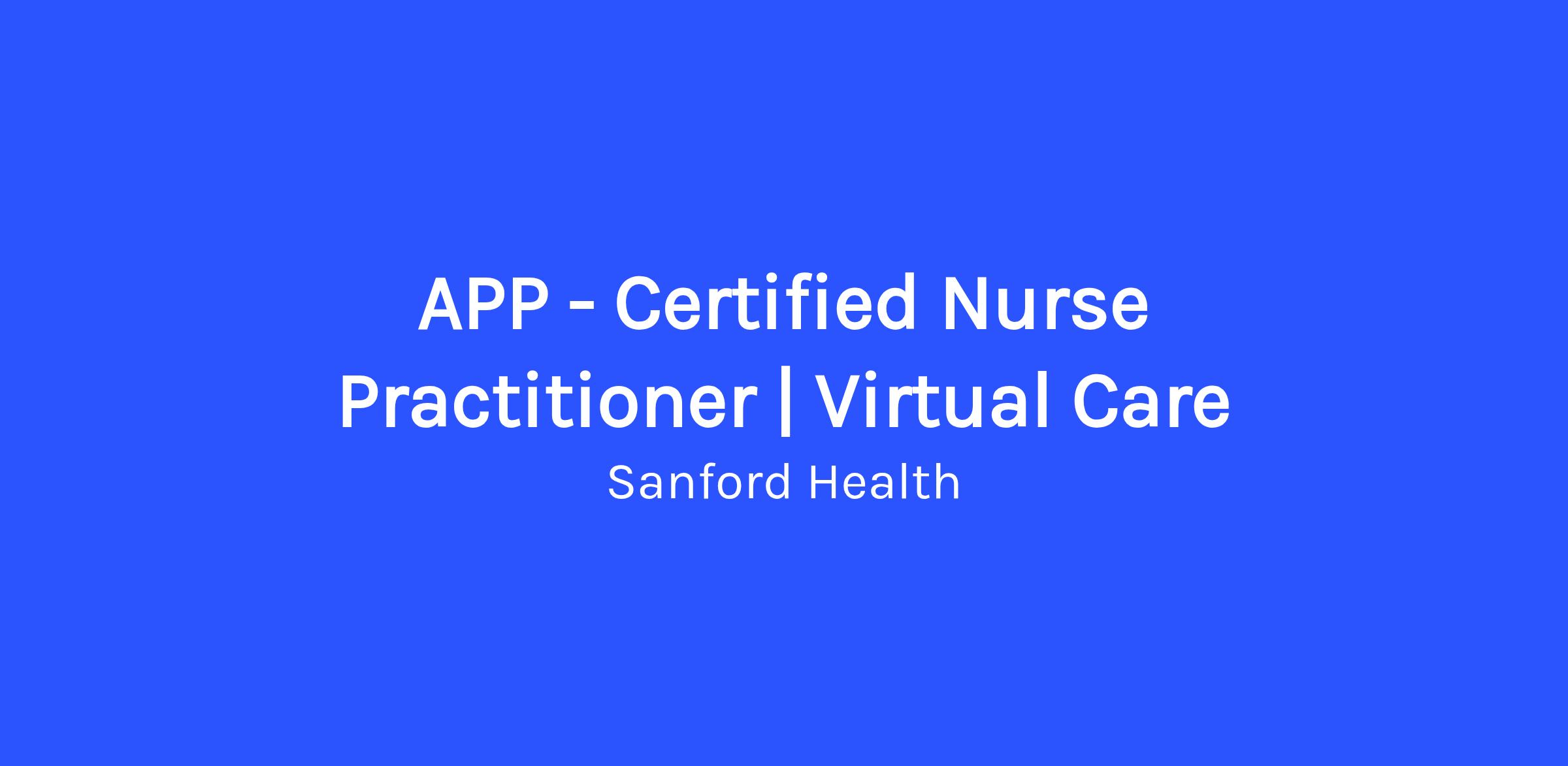 Completion of a master’s, postmaster’s, or doctorate from an nurse practitioner program accredited by the Commission on the Collegiate of Nursing Education or National League for Nursing Accrediting Commission. Licensing prior to August 1, 1995, master's degree in nursing is preferred.Sanford is an EEO/AA Employer M/F/Disability/Vet.