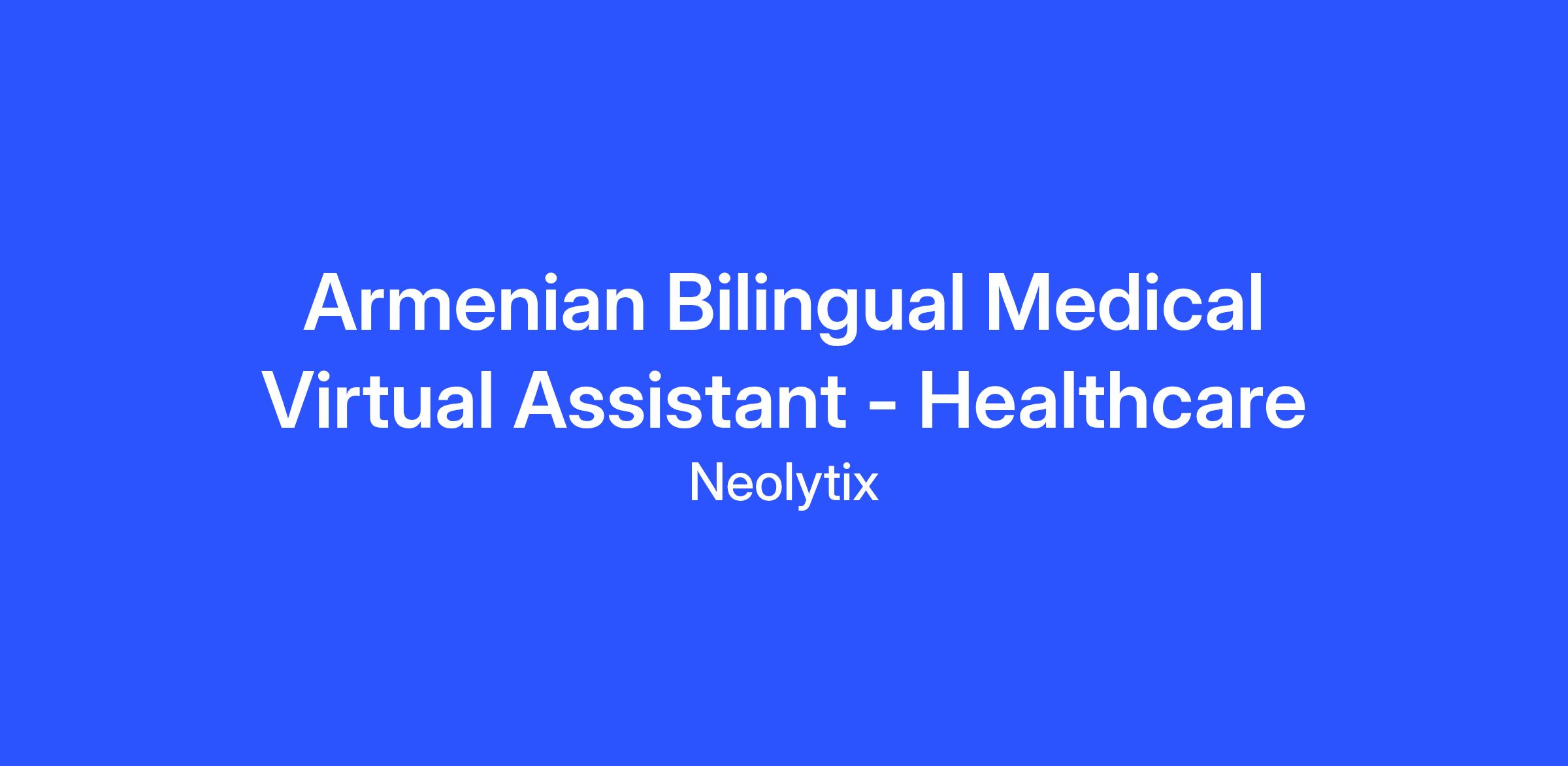 Job Title: Armenian Bilingual Medical Virtual Assistant - Healthcare