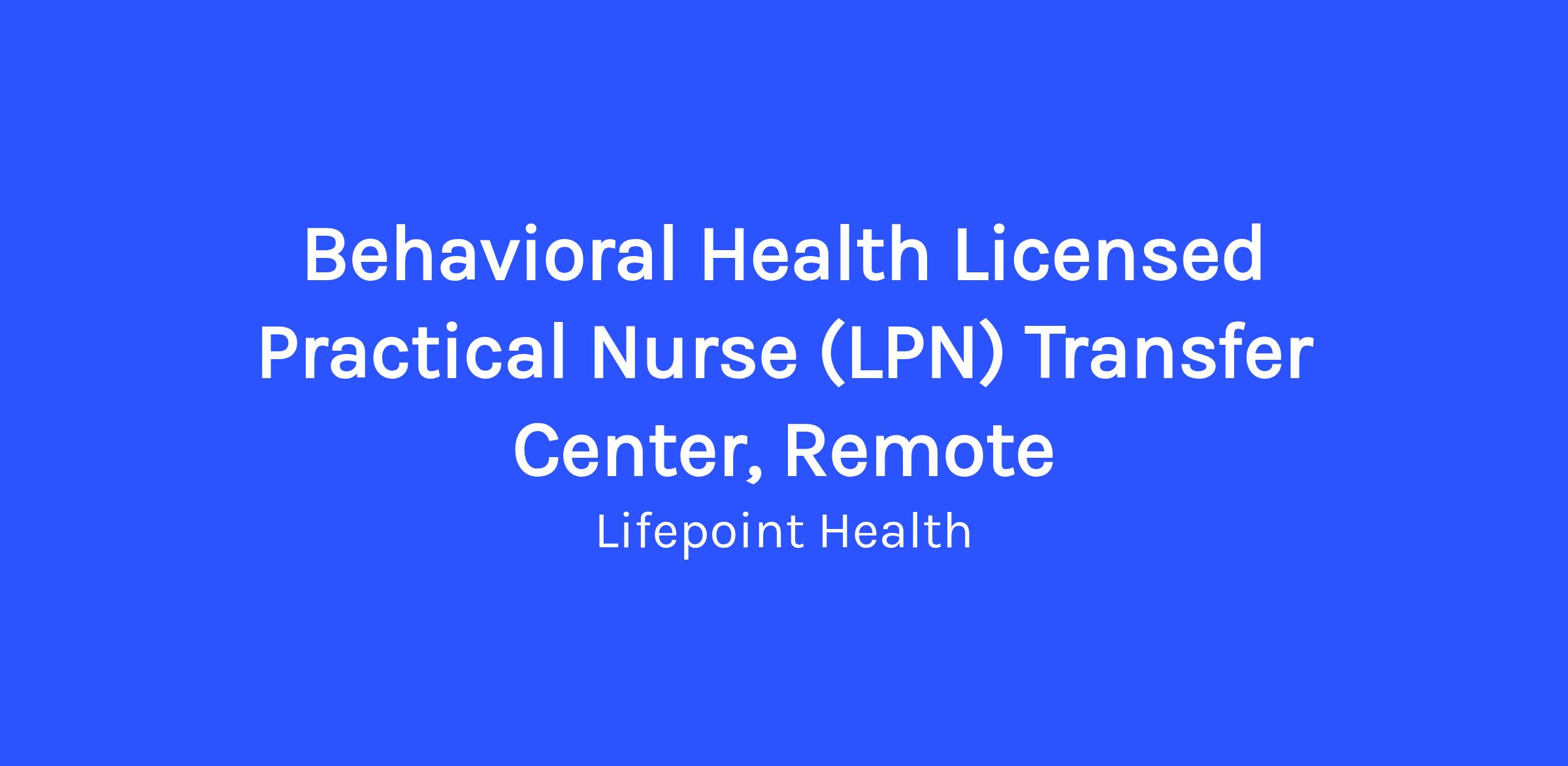 A Behavioral Health Transfer Center LPN (Remote), who excels in this role: