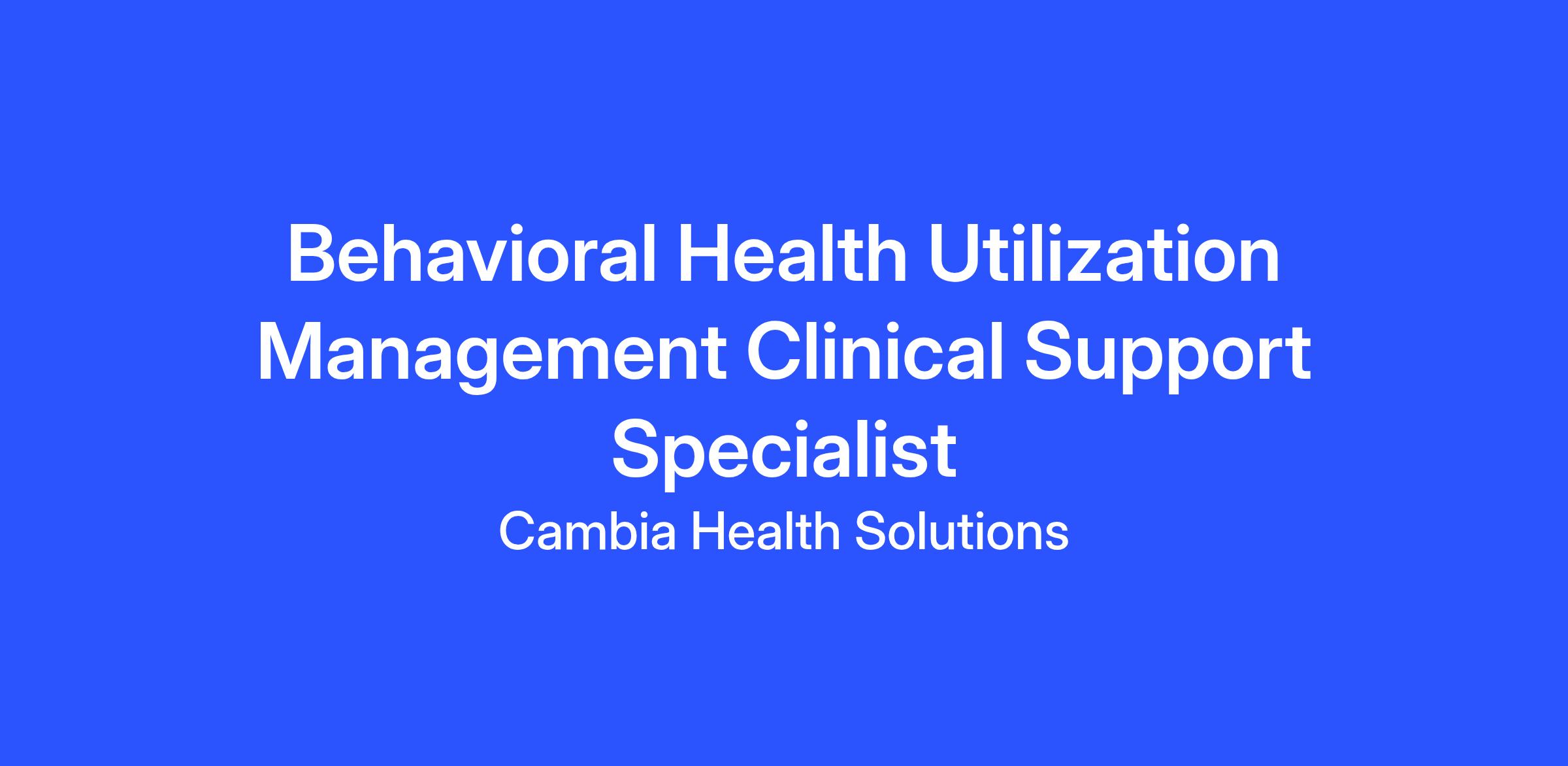 Behavioral Health Utilization Management Clinical Support Specialist