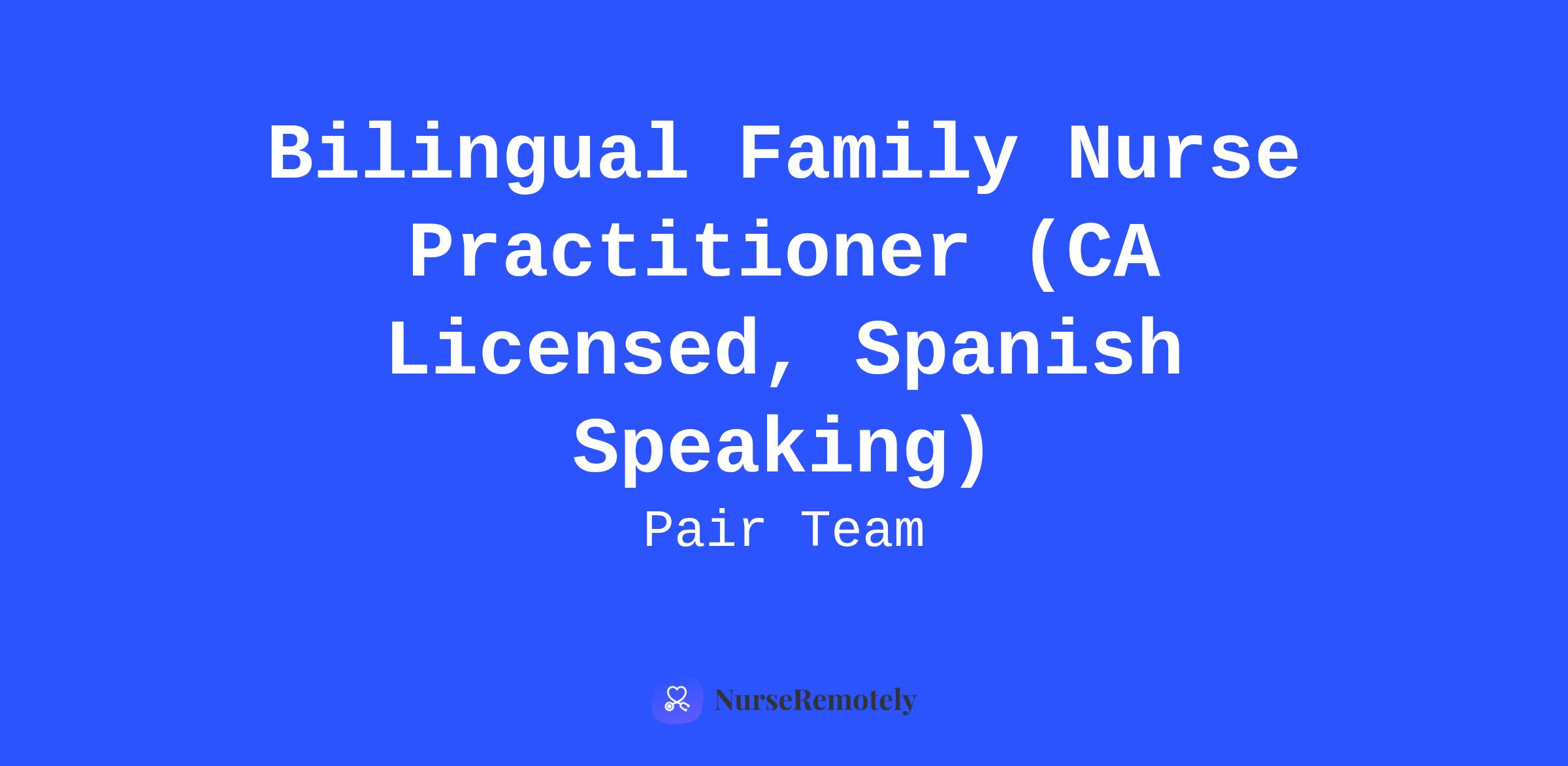 Pair Team is building a team of deeply passionate individuals ready to change primary care operations for those who need it most. We are looking for a highly motivated full-time Bilingual Family Nurse Practitioner who is willing to think creatively and empathically to help our team change the way people access healthcare.