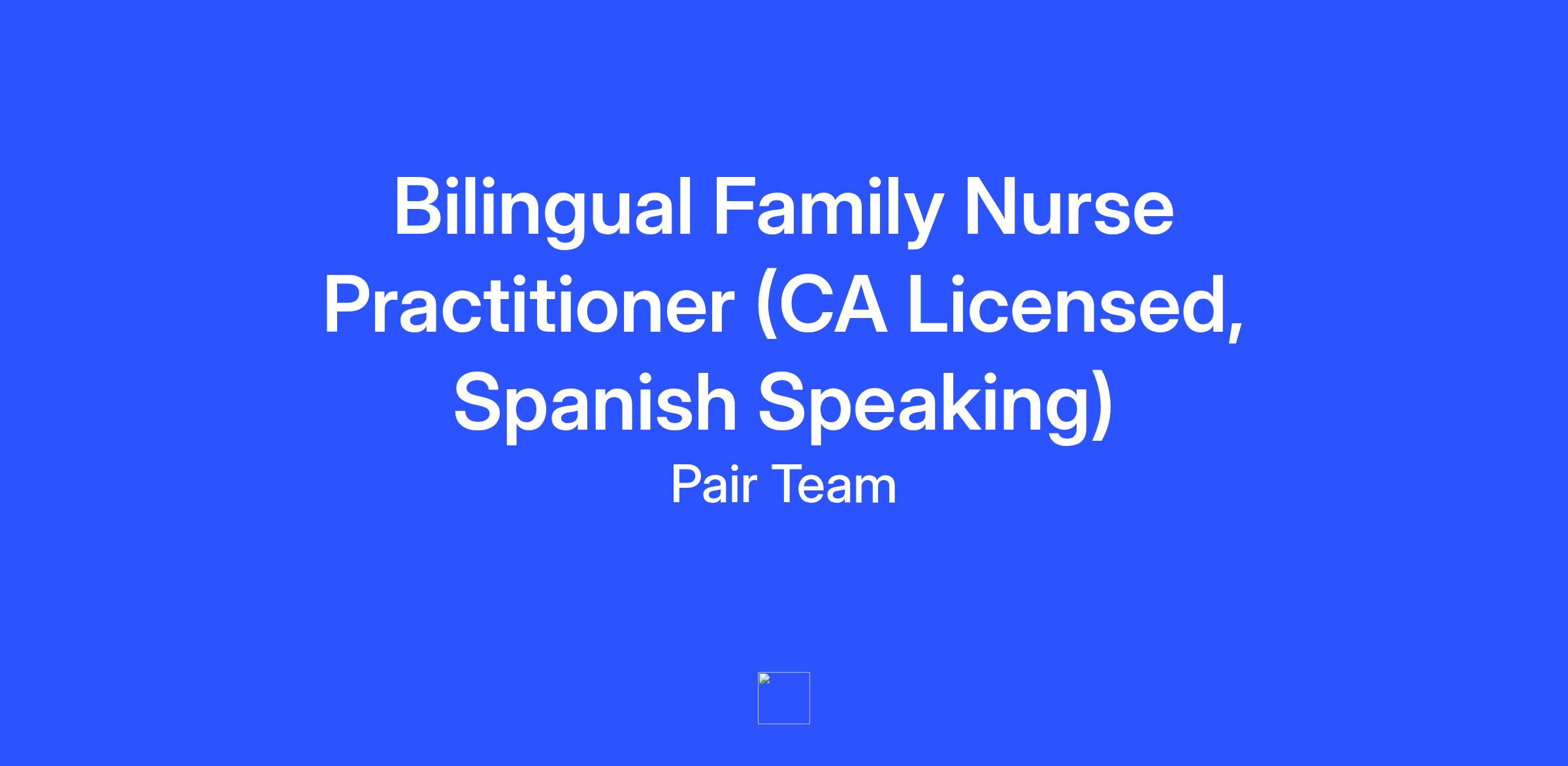 Pair Team is building a team of deeply passionate individuals ready to change primary care operations for those who need it most. We are looking for a highly motivated full-time Bilingual Family Nurse Practitioner who is willing to think creatively and empathically to help our team change the way people access healthcare.