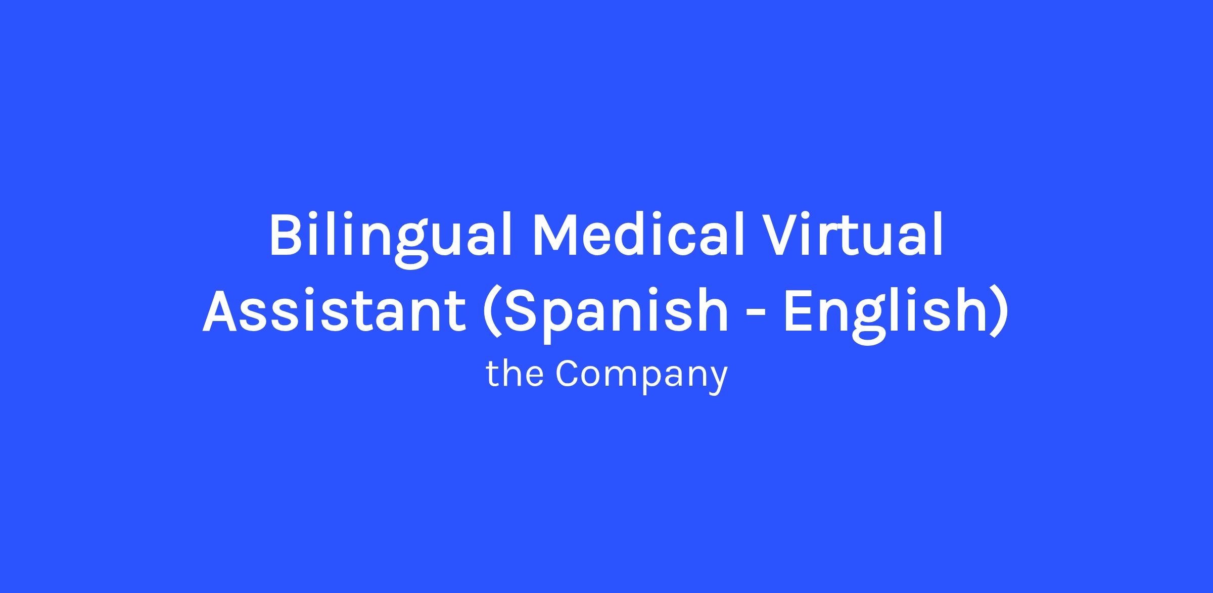 DescriptionJob Title: Bilingual Medical Virtual Assistant (Spanish - English)