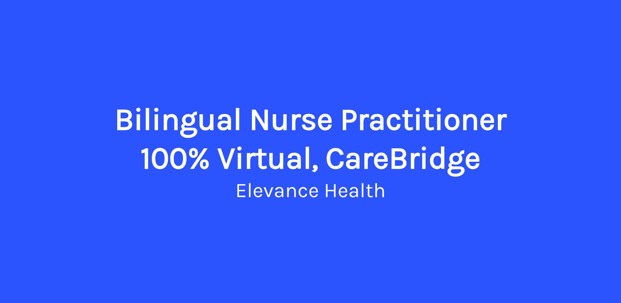Bilingual Nurse Practitioner 100% Virtual, CareBridgeJob Description:
