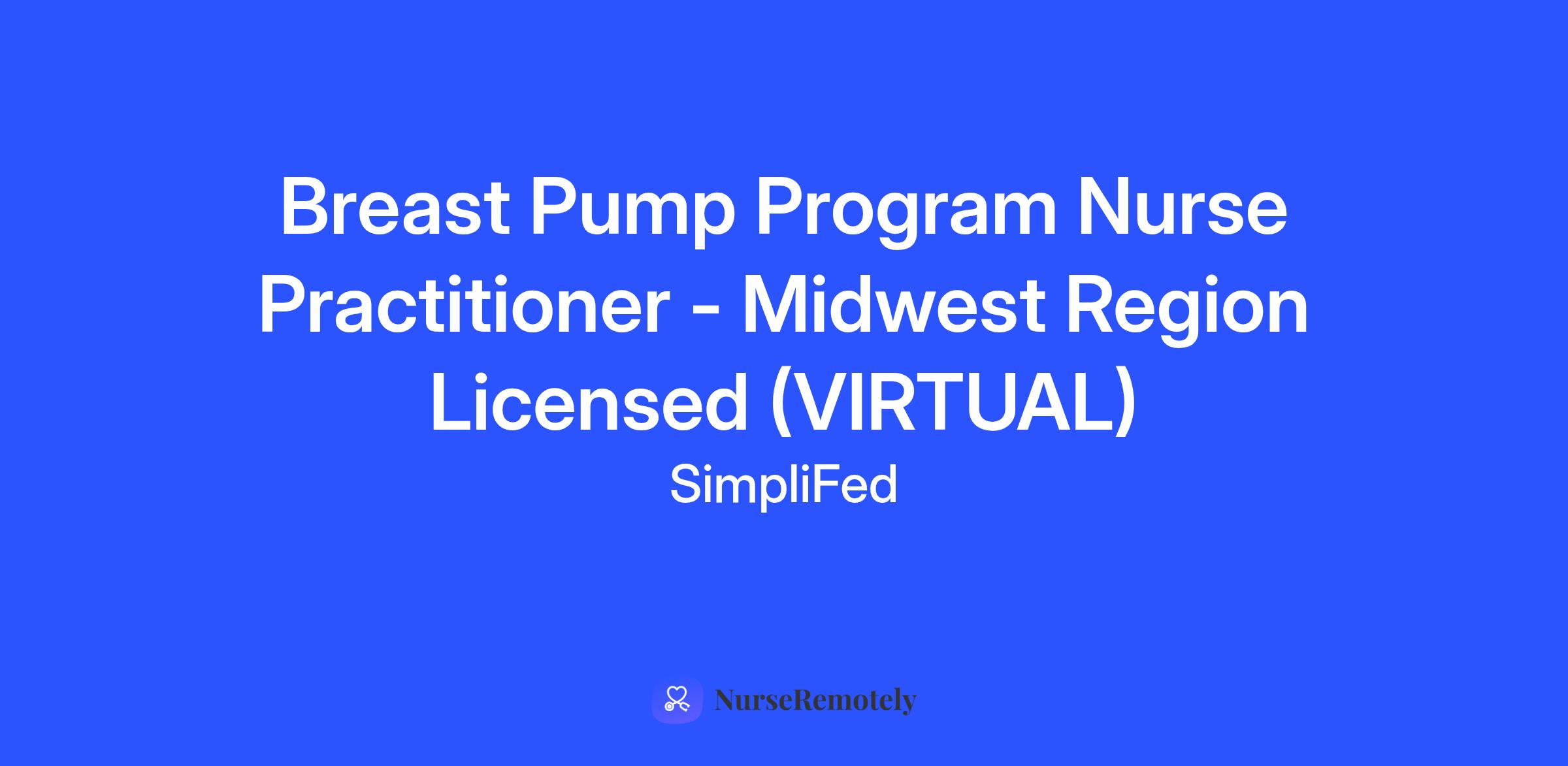 The Midwest Region Licensed Nurse Practitioner (NP) is responsible for ensuring direct patient care is evidence-based and aligns with SimpliFed's maternal health program requirements. Provider will assess and sign breast pump prescriptions for SimpliFed patients.