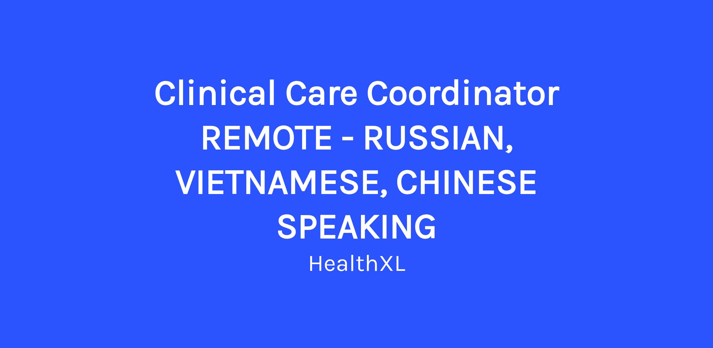 Clinical Care Coordinator REMOTE - RUSSIAN, VIETNAMESE or CHINESE speaking