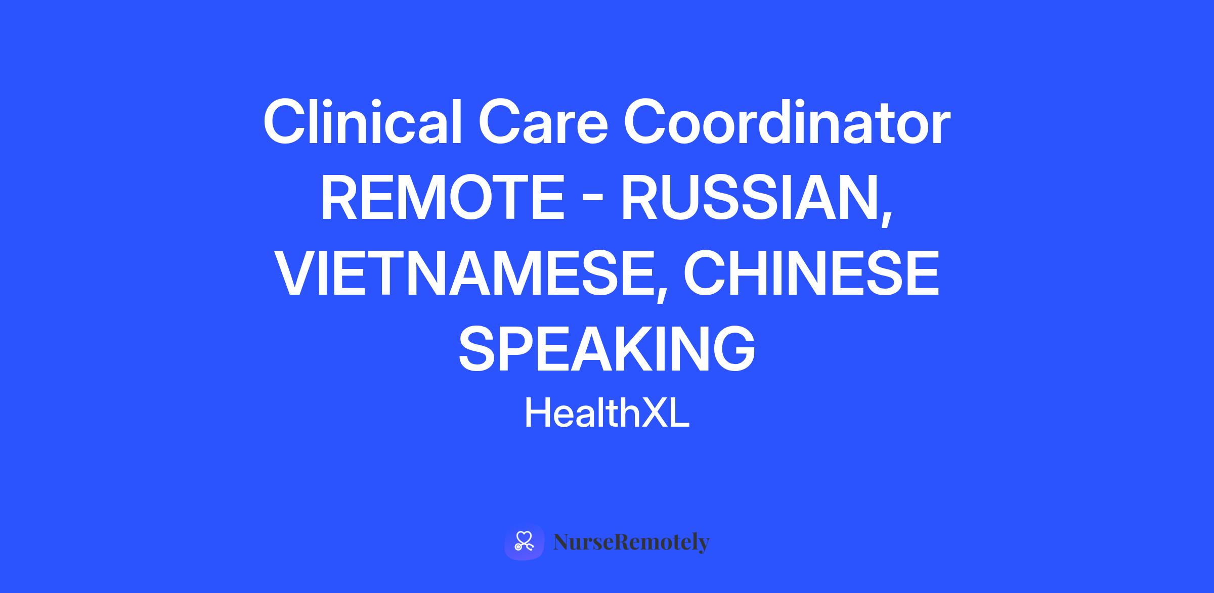 Clinical Care Coordinator REMOTE - RUSSIAN, VIETNAMESE or CHINESE speaking