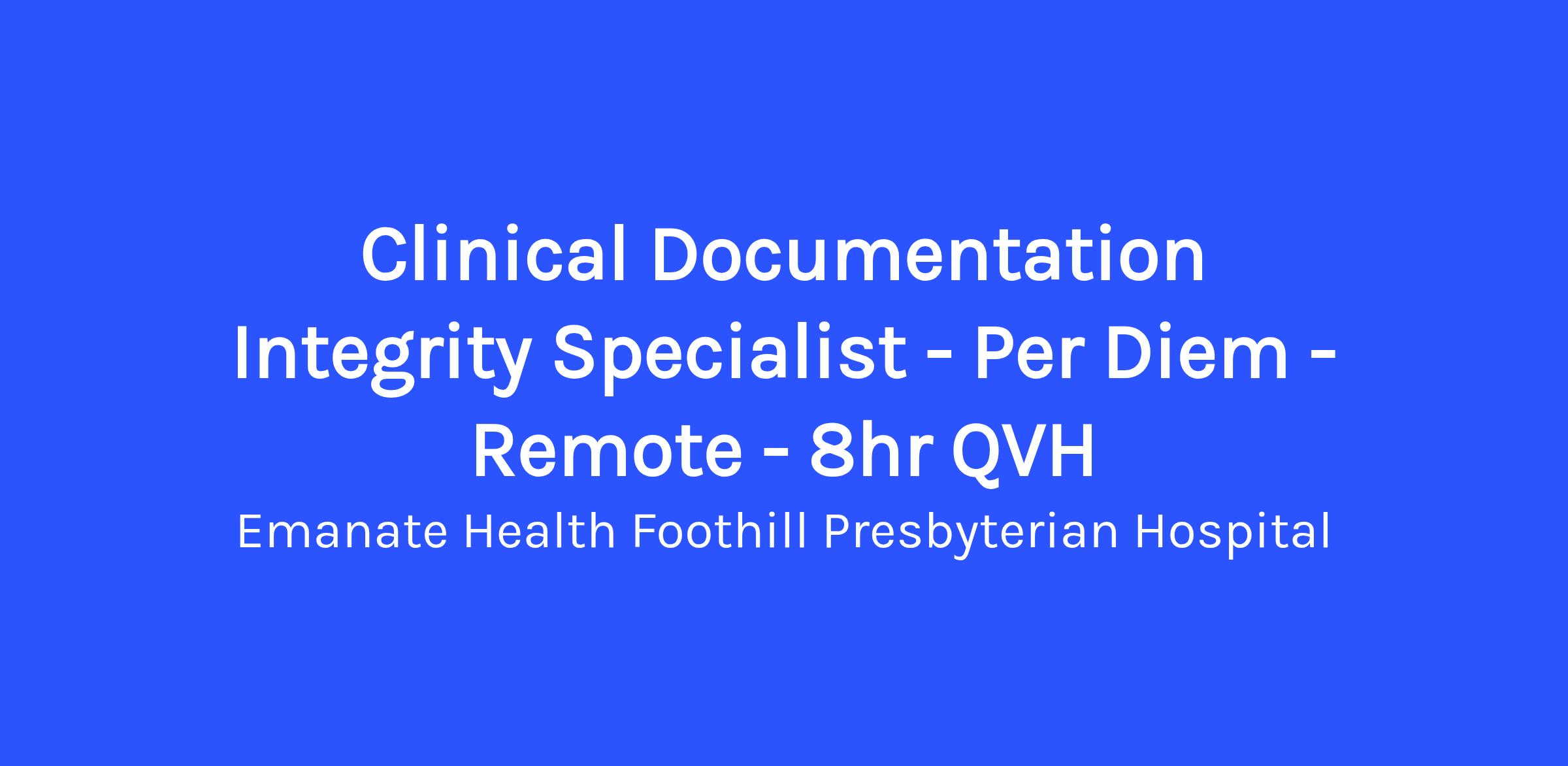 ACDIS Certified Clinical Documentation Specialist (CCDS) or AHIMA Certified Documentation Integrity Practitioner (CDIP) required within 1 year of hire/transfer.