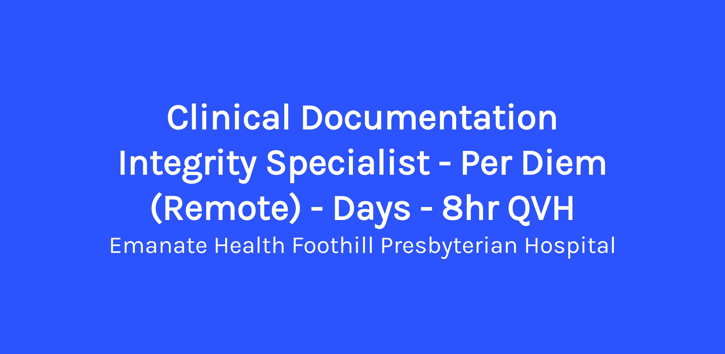 ACDIS Certified Clinical Documentation Specialist (CCDS) or AHIMA Certified Documentation Integrity Practitioner (CDIP) required within 1 year of hire/transfer.