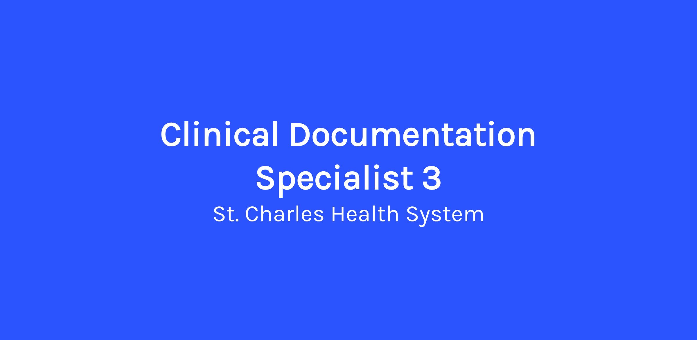 POSITION OVERVIEW: The Clinical Documentation Integrity Specialist 3 at St. Charles Health System provides clinical based review and analysis of the documentation in the patient’s medical record to support accurate capture of patient’s complexity and severity of illness. Utilizes queries of the medical staff and other caregivers to clarify and support completeness of documentation.
