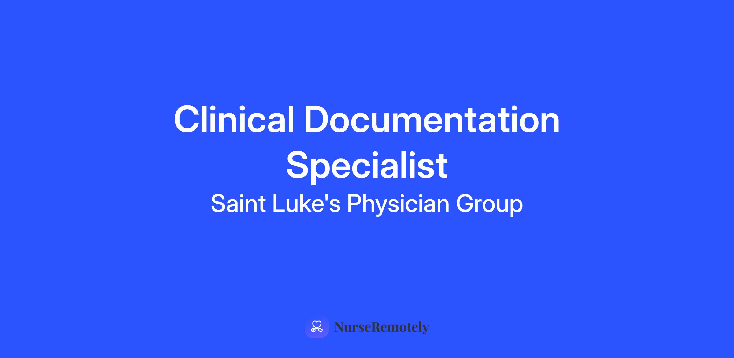 Saint Luke's is looking for a Clinical Documentation Specialist to review medical record documentation to ensure appropriate representation of severity of illness, complications, comorbidities, and clinical support. This person will educate clinical providers on accurate and compliant medical record documentation. A bachelor's Degree is required or 4 years minimum of Inpatient Coding or CDI work experience, in lieu of Bachelor’s Degree. This is a remote position. Our priority is patient care in that we interact with patients daily and have the opportunity to bring something positive to their day to ensure Saint Luke’s is “The Best Place To Get Care, The Best Place To Give Care.”