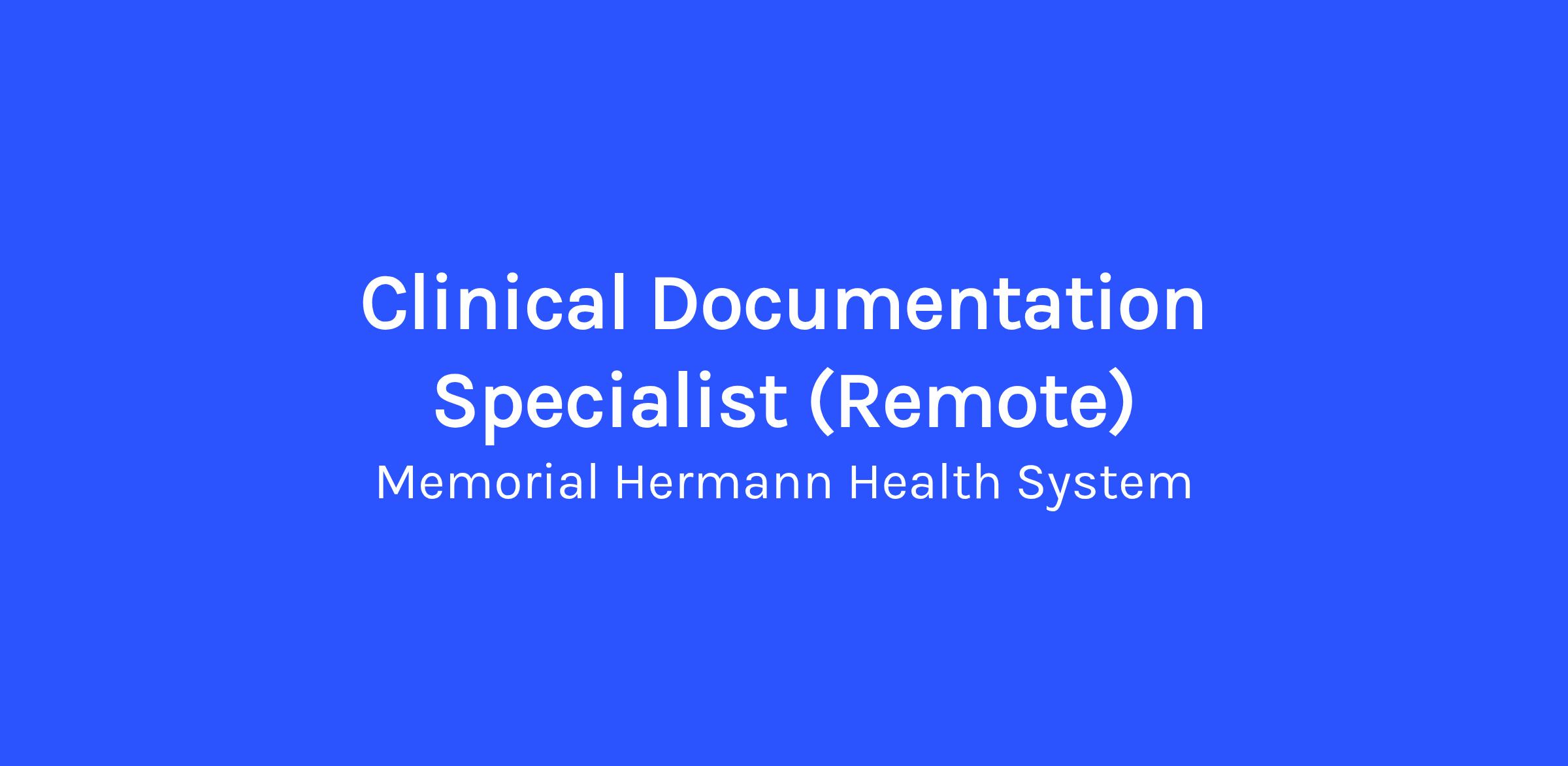 This position is responsible for concurrent review of inpatient medical records in order to identify opportunities for improving the quality of physician documentation. This position facilitates modifications to clinical documentation through concurrent interaction with physicians (face-to-face and electronically) and other members of the health care team. The goal of this position is to achieve a complete medical record in order to support complete, accurate and timely coding.MEMORIAL HERMANN CANNOT HIRE REMOTE WORKERS IN THE FOLLOWING STATES:
