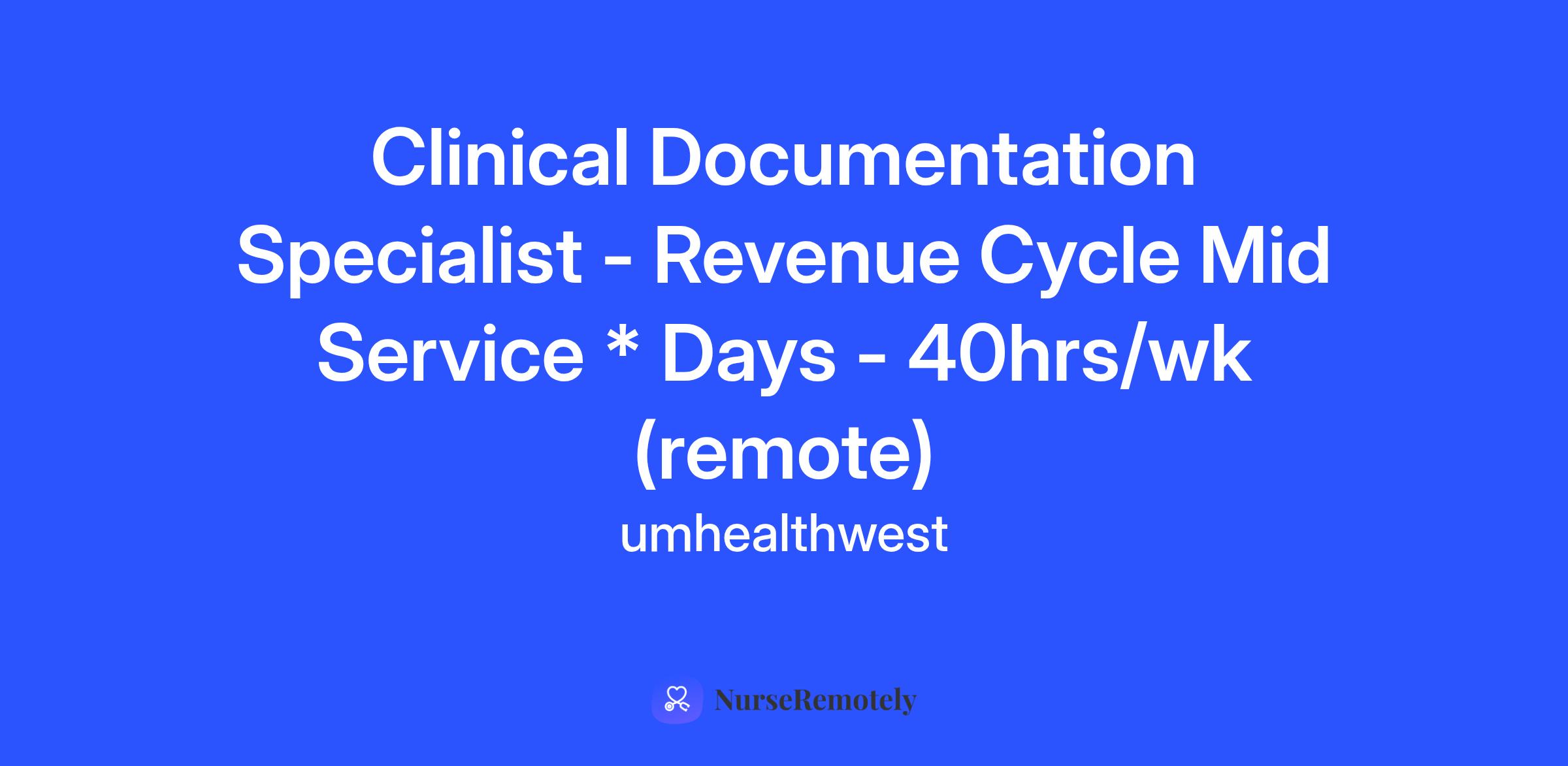Clinical Documentation Specialist - Revenue Cycle Mid Service * Days - 40hrs/wk (remote)