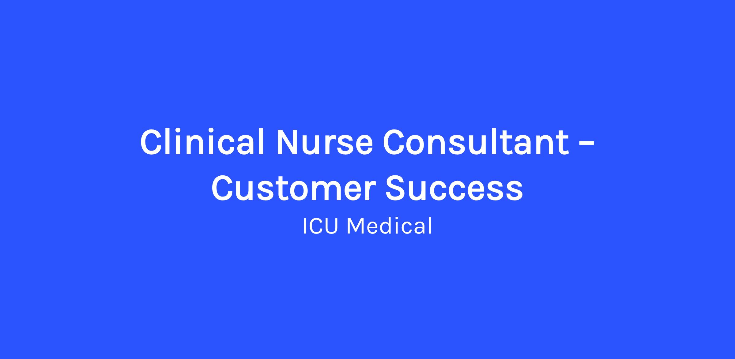 • Product Expertise o Maintain a deep understanding of ICU Medical’s infusion products and services to provide expert guidance and support. o Strong clinical practice background Customer Success Nurse Consultant