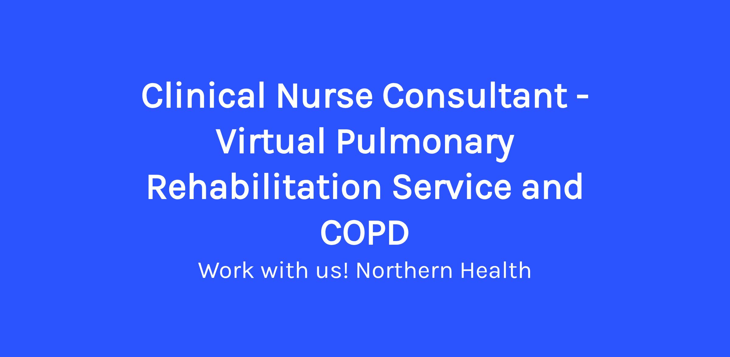 Reference Number: 52994: Clinical Nurse Consultant - Virtual Pulmonary Rehabilitation Service and COPD