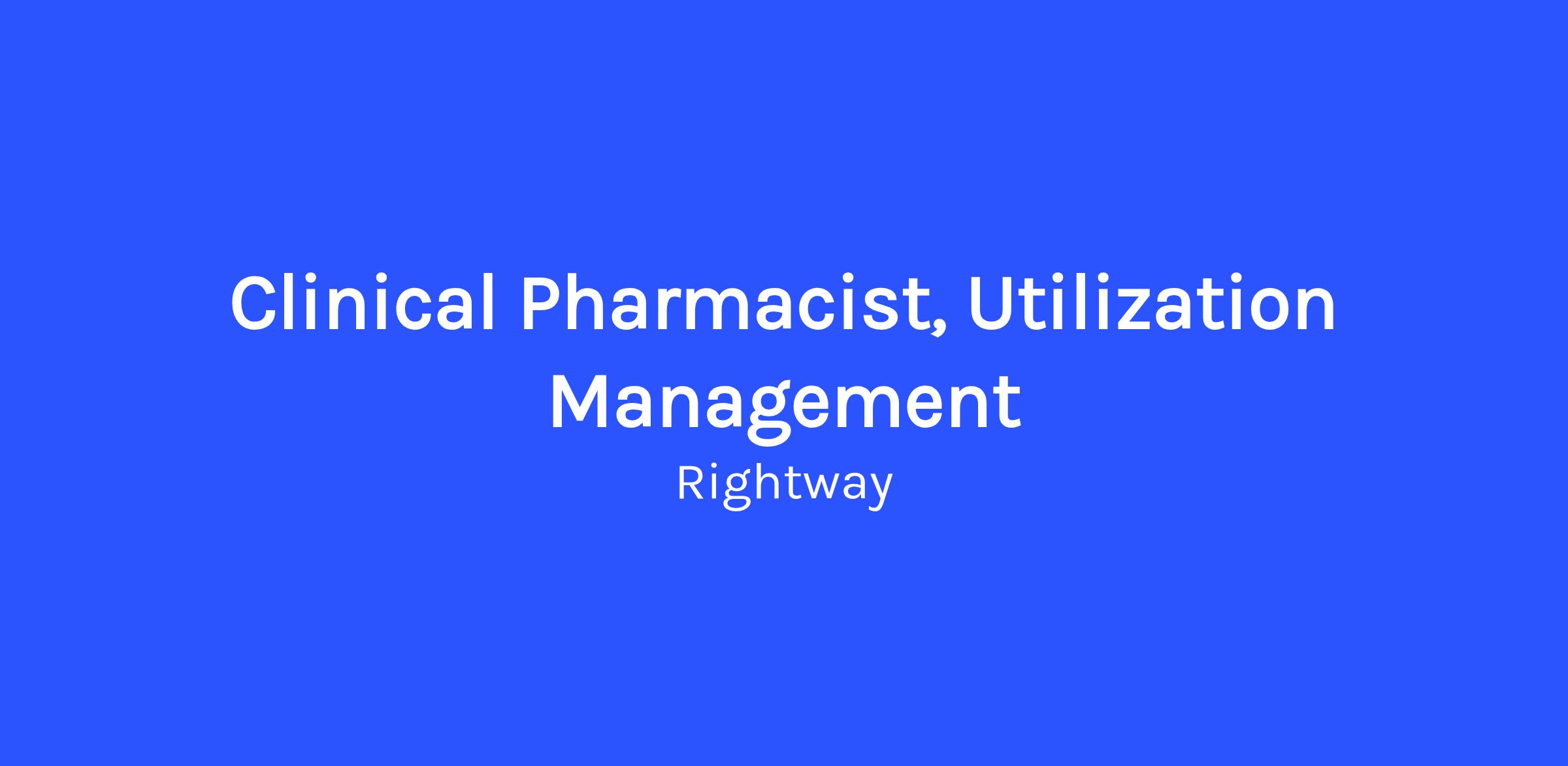 The Clinical Pharmacist, Utilization Management is a member of the Rightway PBM Clinical Operations team. Our pharmacy benefit management (PBM) offering represents an important growth area for Rightway. Helping clients better manage pharmacy spend to make drugs more affordable for their employees and dependents is critical to their business sustainability. RightwayRx is responsible for designing, building and operating a new-to-the-world PBM model base on our core tenets: fairness & transparency, unlocking the supply chain, supporting the physician-patient relationship, and utilizing navigation to empower consumers