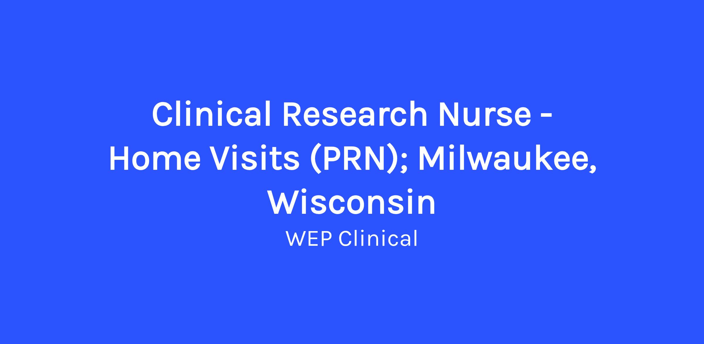 Work Location: Milwaukee, Wisconsin; Drive up to 1–2 hours to patient homes in your area (travel time compensated!)