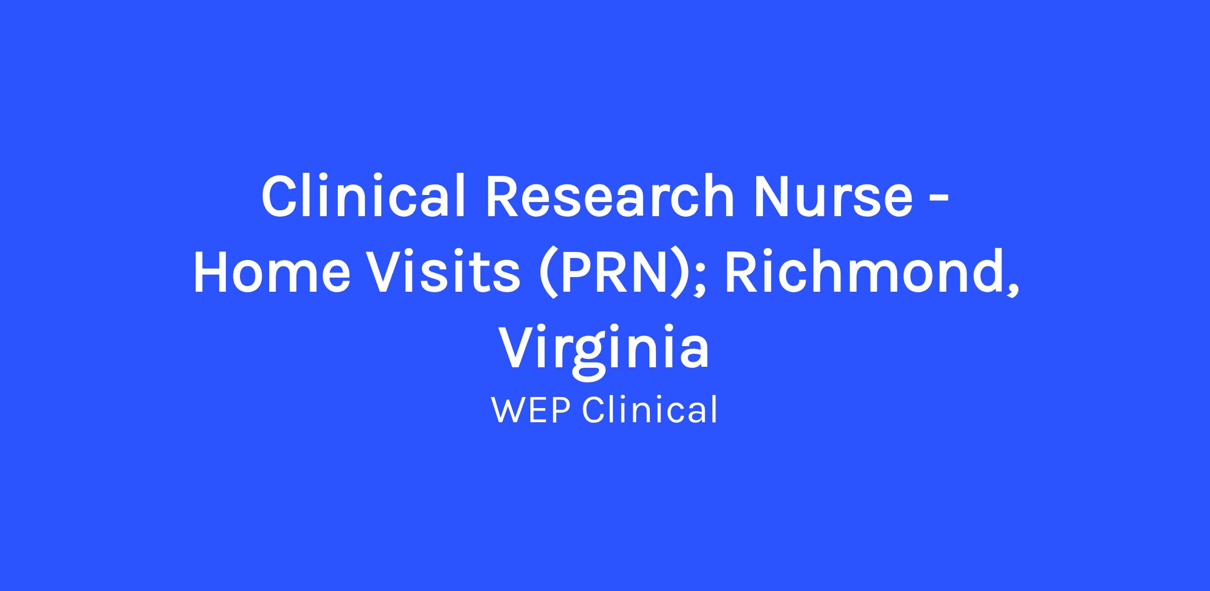 Work Location: Richmond, Virginia; Drive up to 1–2 hours to patient homes in your area (travel time compensated!)