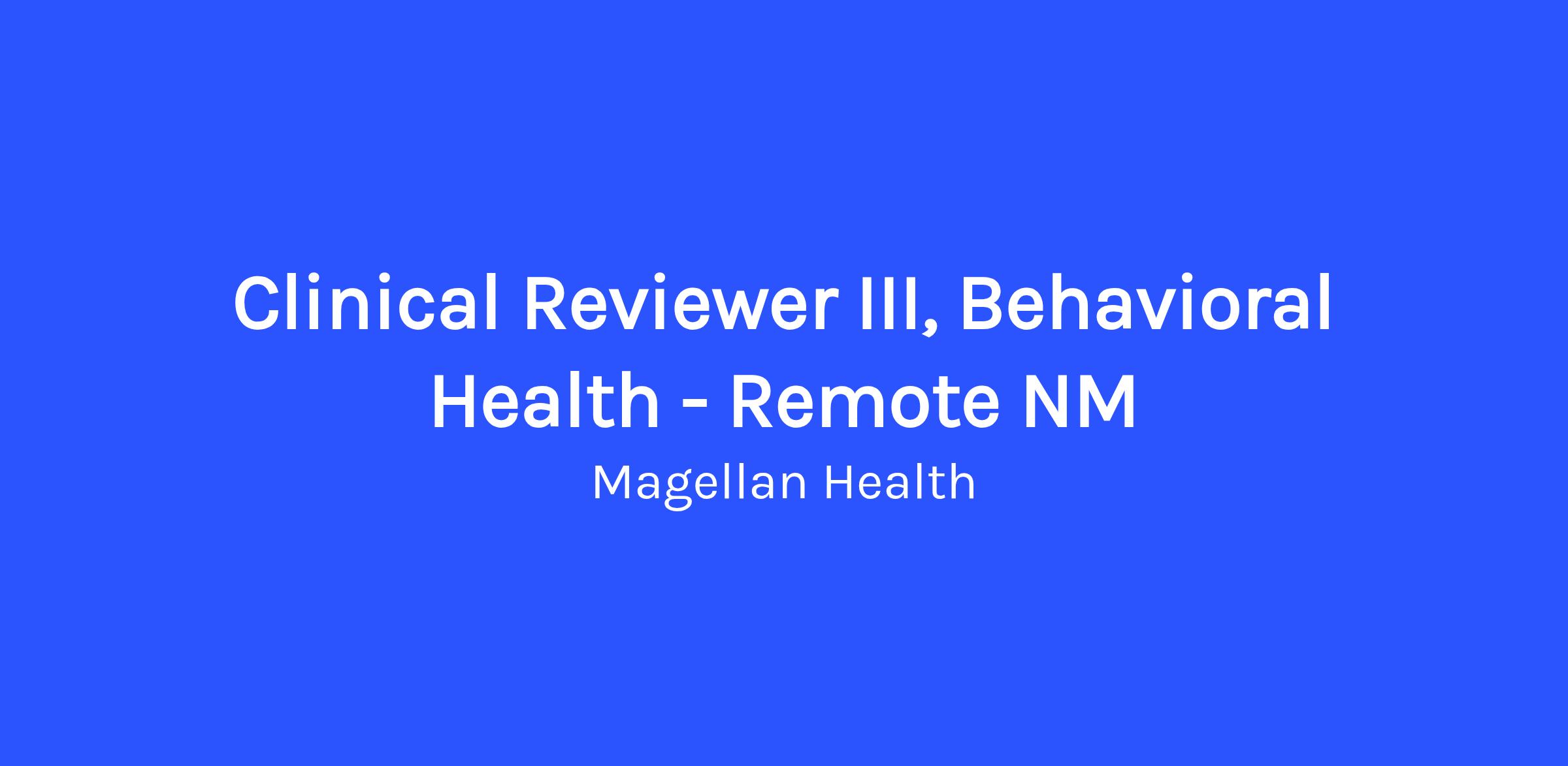 Clinical Reviewer III, Behavioral Health - Remote NM