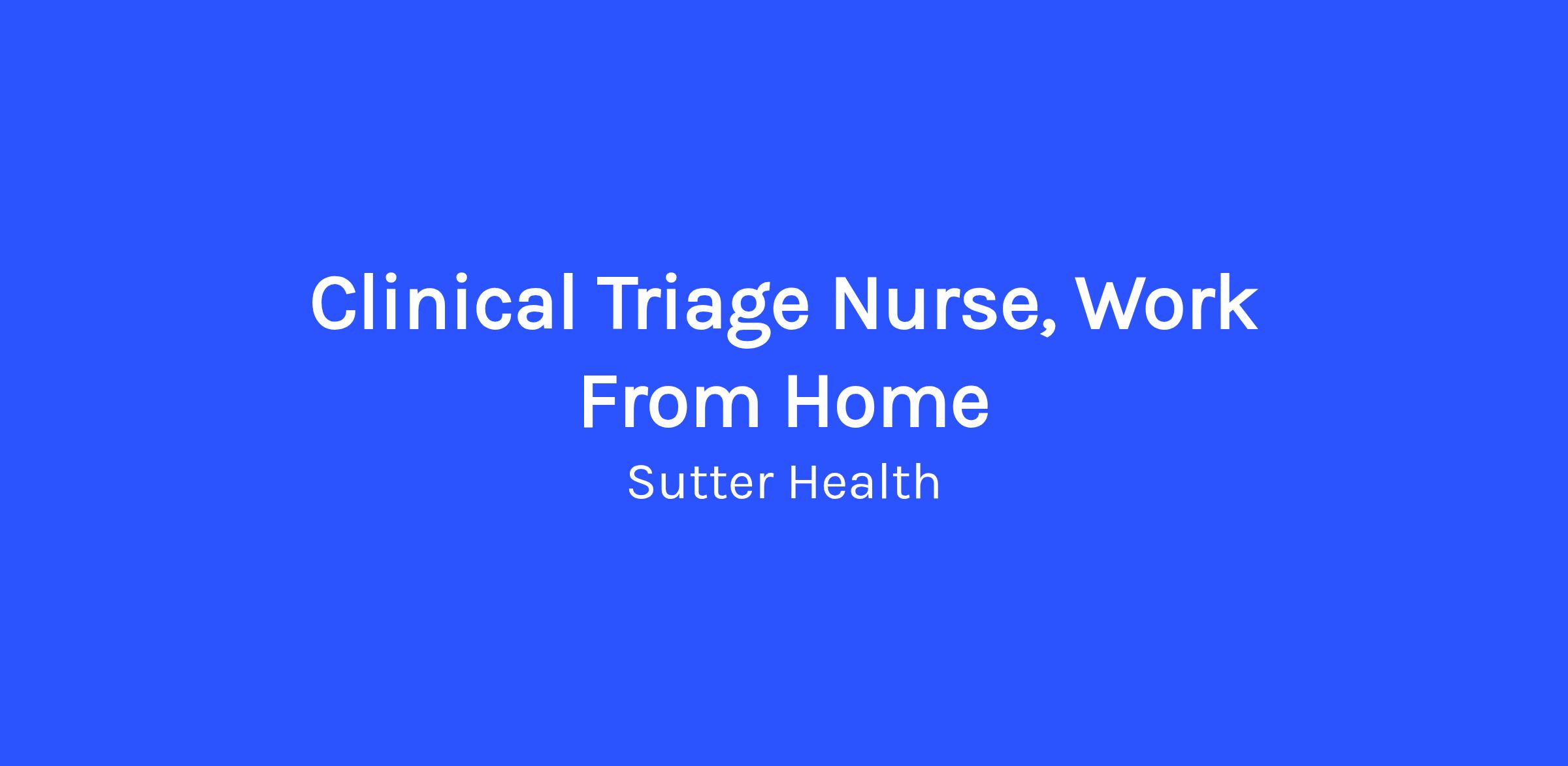 Aids patients in obtaining the correct level of care with the appropriate provider at the right time. Provides advance clinical telephone support to Sutter Health patients, other callers, in-basket and other remote support for physicians, and limited in-clinic support. Uses the nursing process, input from physicians, and Sutter Health's approved telephone nursing guidelines and protocols to maintain highly efficient operations, to provide quality care, and to ensure positive patient outcomes. Assesses patients' needs, appropriately dispositions cases, collaborates with the clinic and hospital-based providers to renew electronic prescriptions, identifies hospital and community resources, consultations and referrals, and preforms nursing follow-up activities. Clinical support includes assisting physician partners with message management and other communications within the electronic medical record (EMR) system, as well as limited patient care in an outpatient setting.