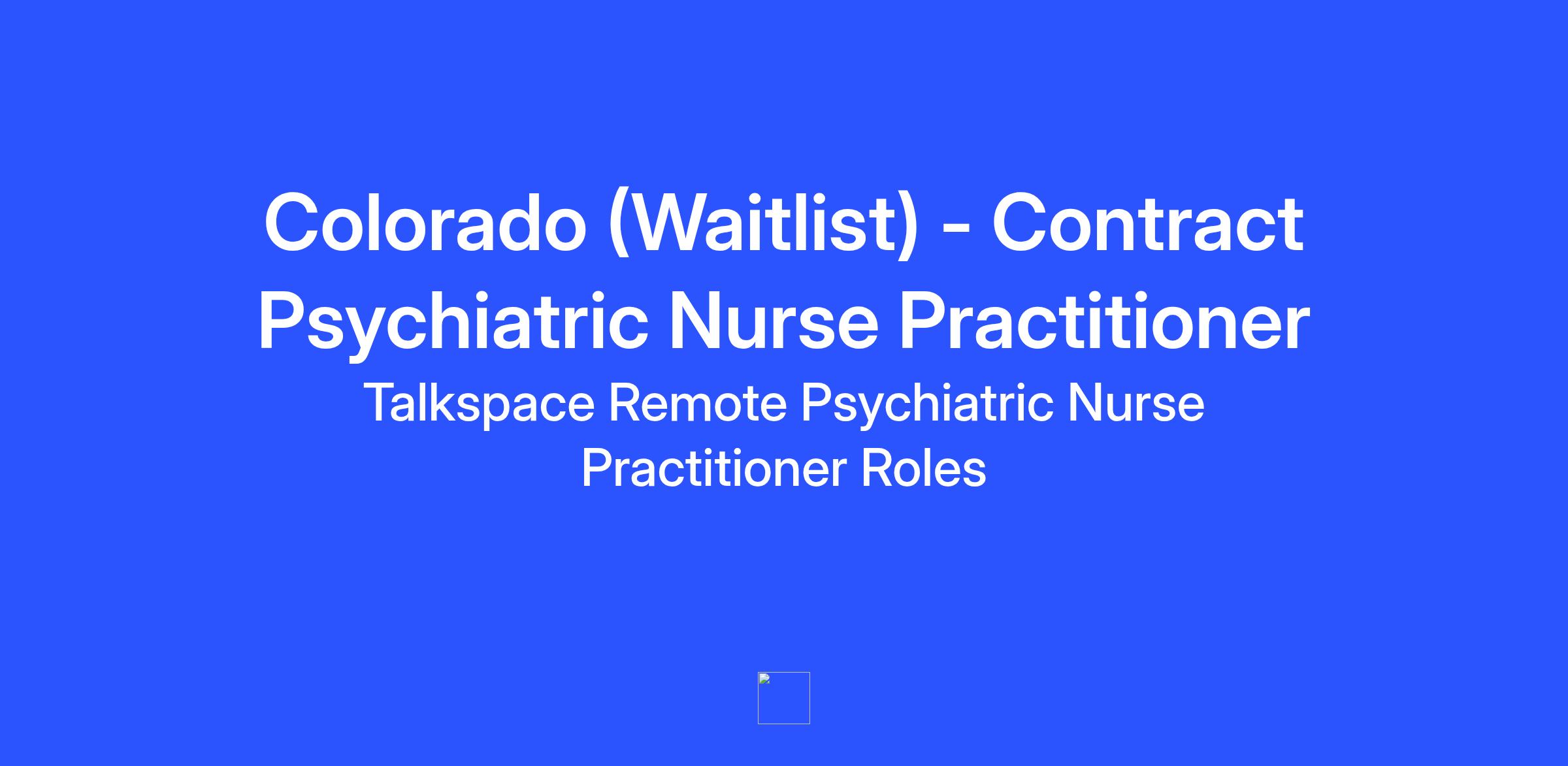 Colorado (Waitlist) - Contract Psychiatric Nurse Practitioner