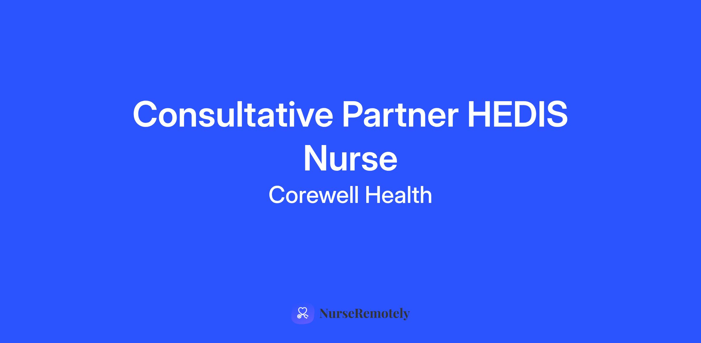 Are you a detailed, driven nurse looking for a meaningful seasonal opportunity? Corewell Health is seeking a Consultative Partner, HEDIS Nurse to join our team from January through May, supporting our busiest and most impactful HEDIS season. In this remote role, you'll play a key part in advancing critical quality initiatives by performing accurate, efficient medical record review and abstraction for HEDIS reporting. You'll work within electronic medical records and a specialized reporting system to capture, validate, and secure essential clinical documentation - helping ensure the highest standards of care for the communities we serve.