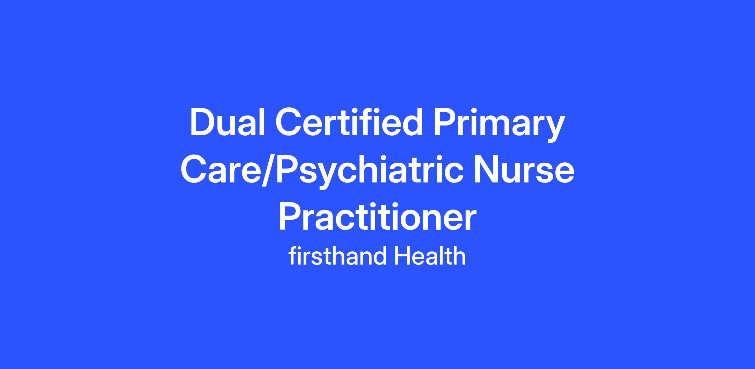 - 2+ years clinical care as a dual certified Family Nurse Practitioner/Psychiatric Mental Health Nurse Practitioner or Adult Health Nurse Practitioner/Psychiatric Mental Health Practitioner.