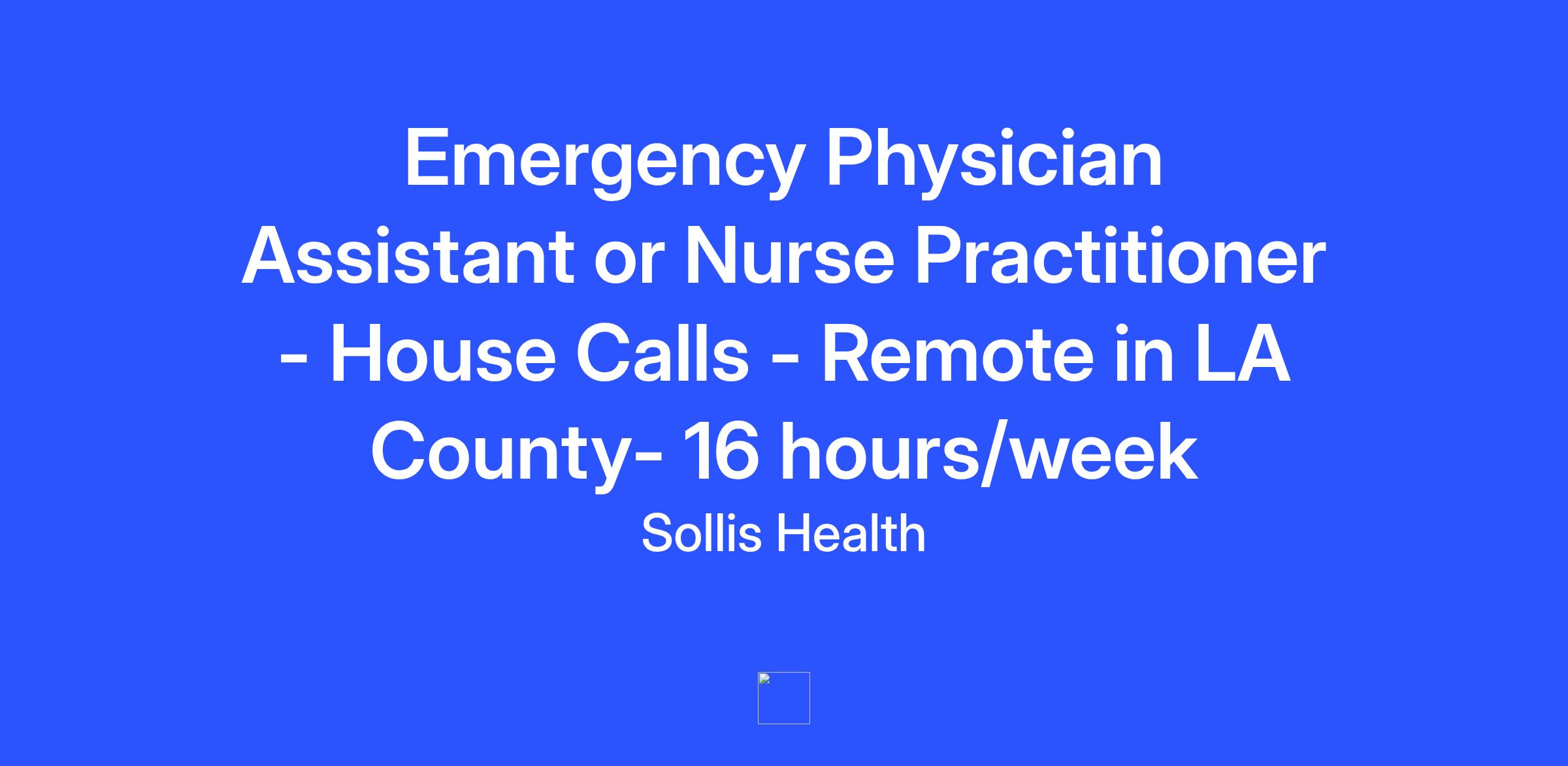We are open to Onsite (Bev Hills Clinic), Hybrid or Remote within LA County. Must be able to commute to Beverly Hills clinic 1x/week (or as needed) to refill house call bag.