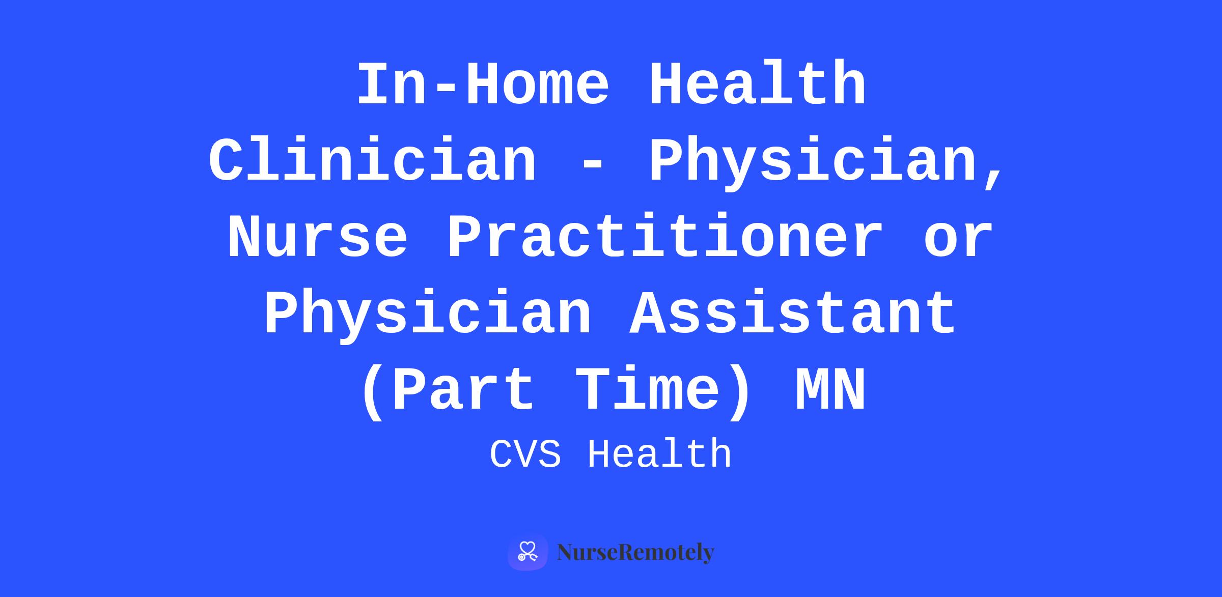 Do you have a passion for engaging with people and helping them on their journey to better health? Signify Health, part of CVS Health®, is seeking a Clinician (Nurse Practitioner, Physician Assistant or Physician) to provide In-Home Health Evaluations, engaging with people in the comfort of their own homes and helping bridge gaps in care.