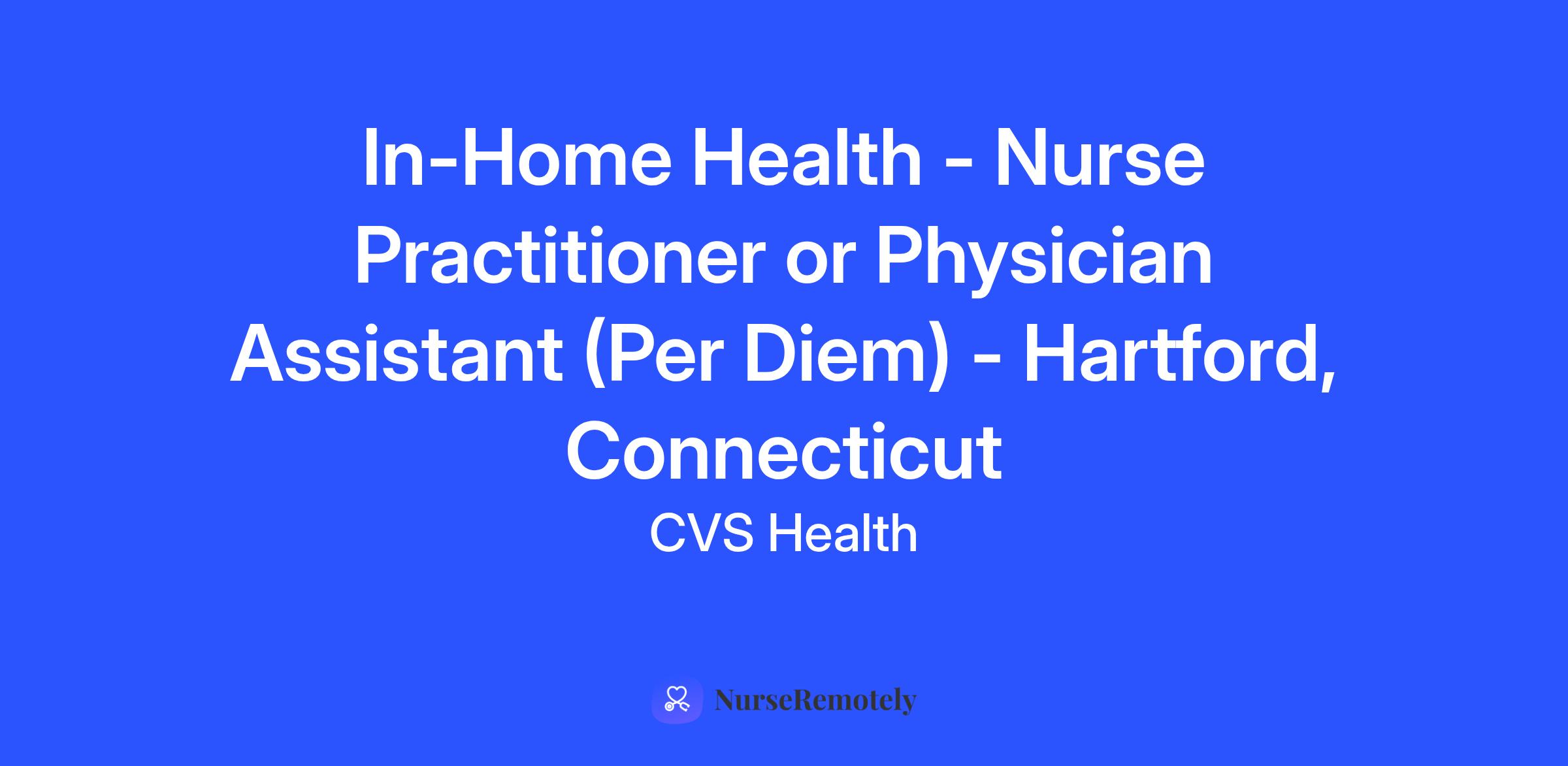 Do you have a passion for engaging with people and helping them on their journey to better health? Signify Health, part of CVS Health®, is seeking a Per Diem Clinician (Nurse Practitioner or Physician Assistant) to provide In-Home Health Evaluations, engaging with people in the comfort of their own homes and helping bridge gaps in care.