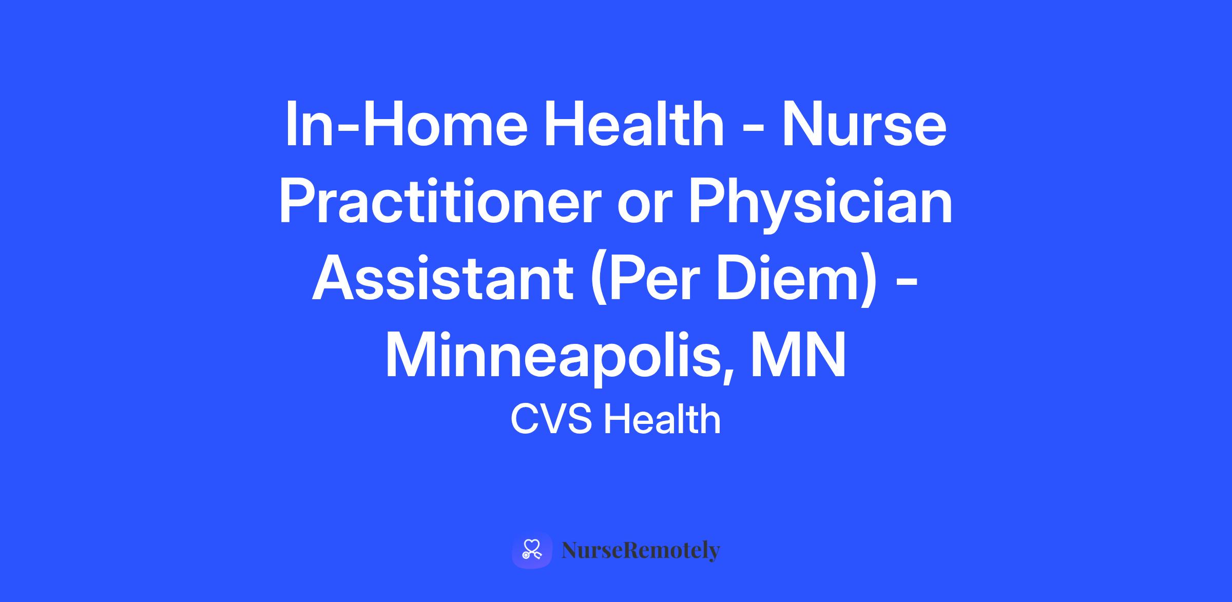 Do you have a passion for engaging with people and helping them on their journey to better health? Signify Health, part of CVS Health®, is seeking a Per Diem Clinician (Nurse Practitioner or Physician Assistant) to provide In-Home Health Evaluations, engaging with people in the comfort of their own homes and helping bridge gaps in care.