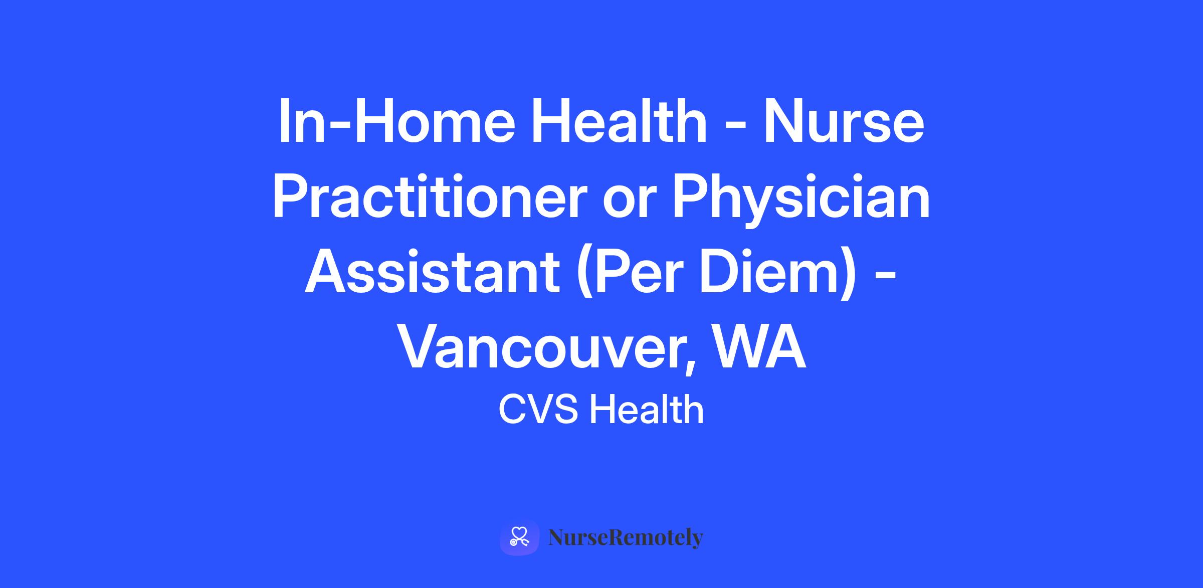 Do you have a passion for engaging with people and helping them on their journey to better health? Signify Health, part of CVS Health®, is seeking a Per Diem Clinician (Nurse Practitioner or Physician Assistant) to provide In-Home Health Evaluations, engaging with people in the comfort of their own homes and helping bridge gaps in care.