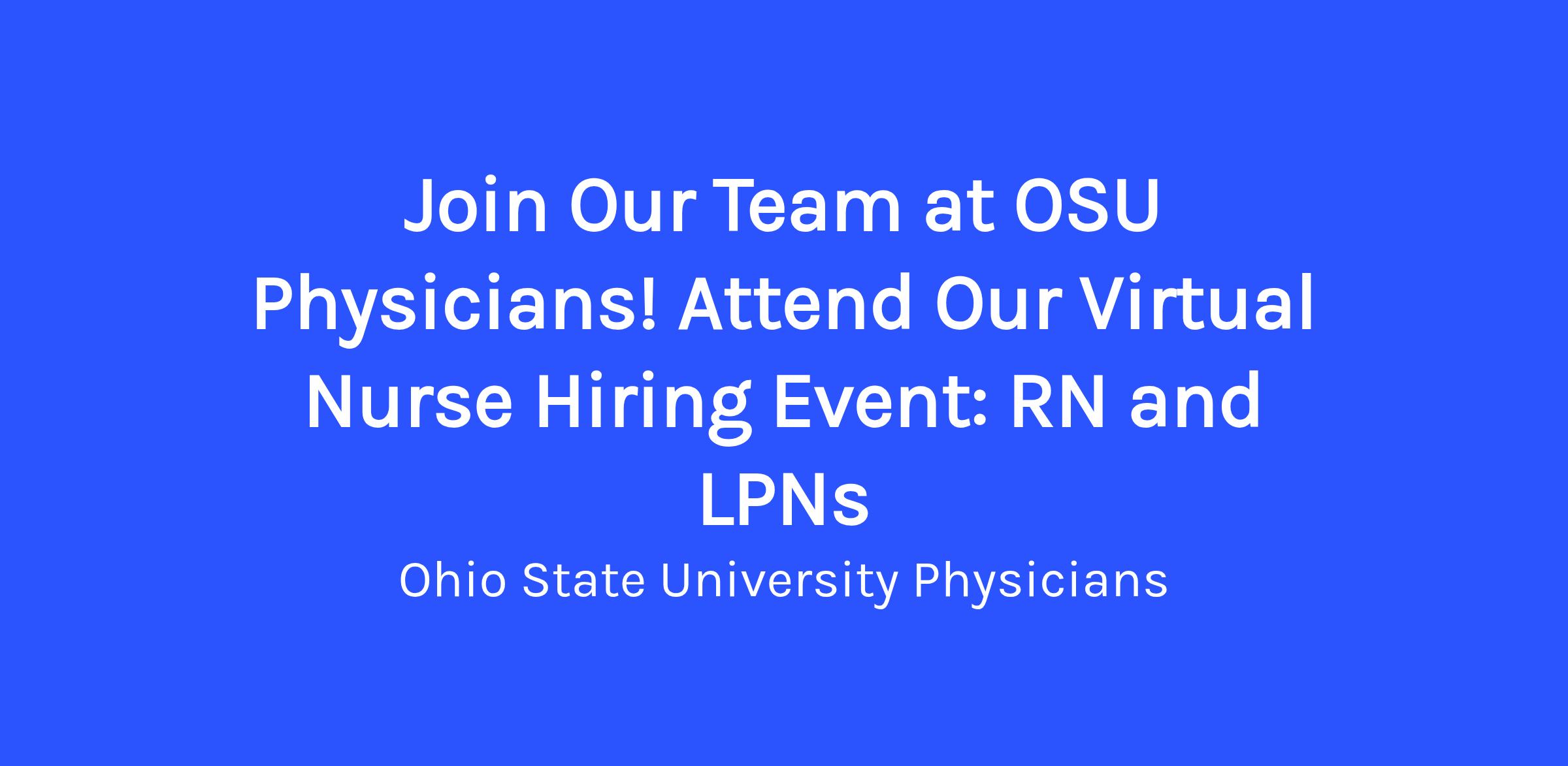 Join OSU Physicians for a Nursing Hiring Event featuring opportunities for LPNs, Lead LPNs, RNs, RN Triage, RN Care Coordinators, and Lead RNs. Connect with leadership, interview on-site, and discover how you can grow your nursing career in an outpatient setting focused on exceptional patient care.