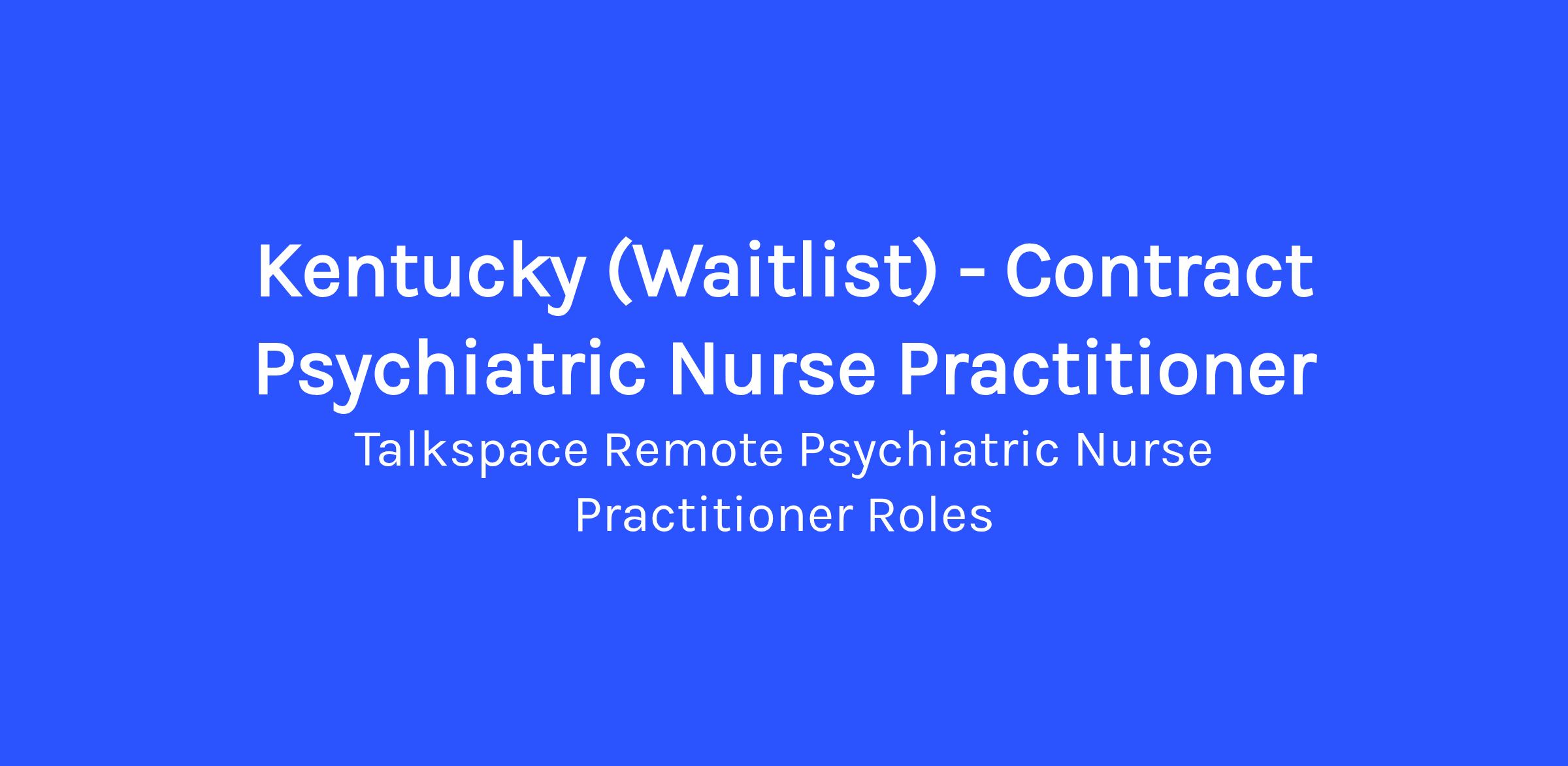 Kentucky (Waitlist) - Contract Psychiatric Nurse Practitioner