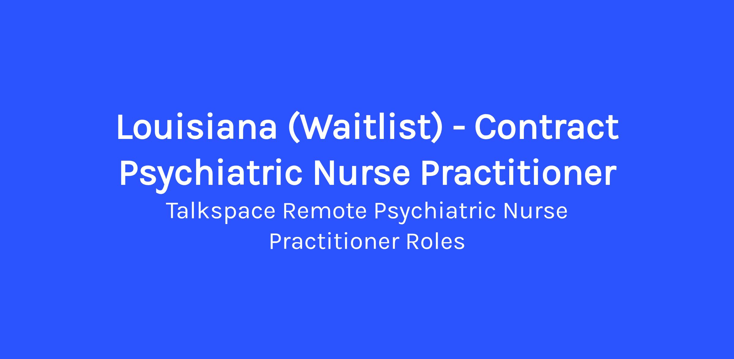 Louisiana (Waitlist) - Contract Psychiatric Nurse Practitioner