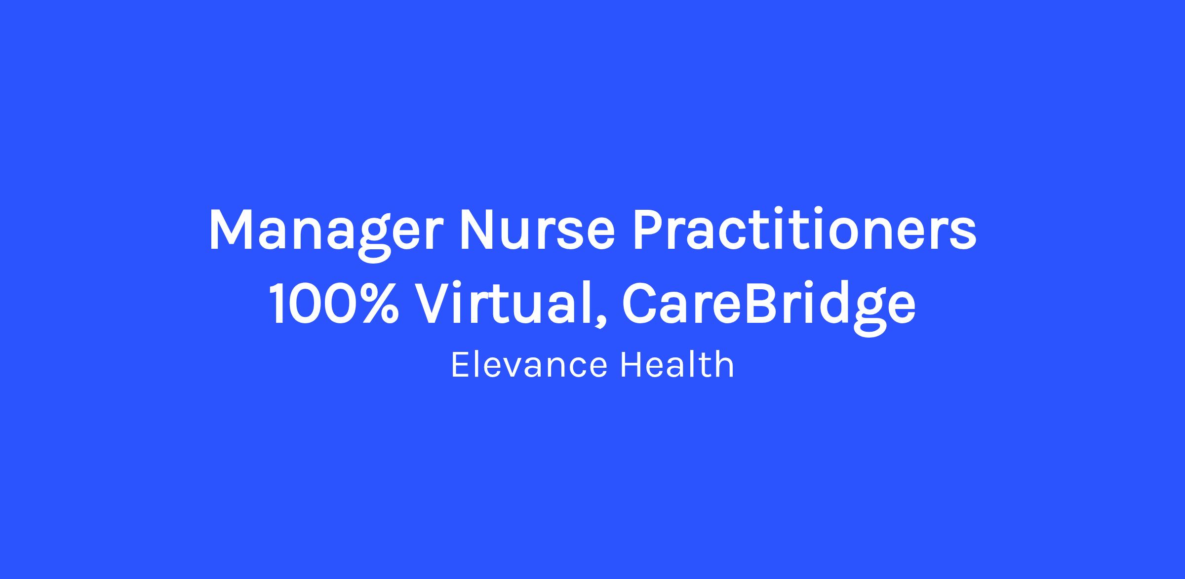 Manager Nurse Practitioners 100% Virtual, CareBridgeJob Description: