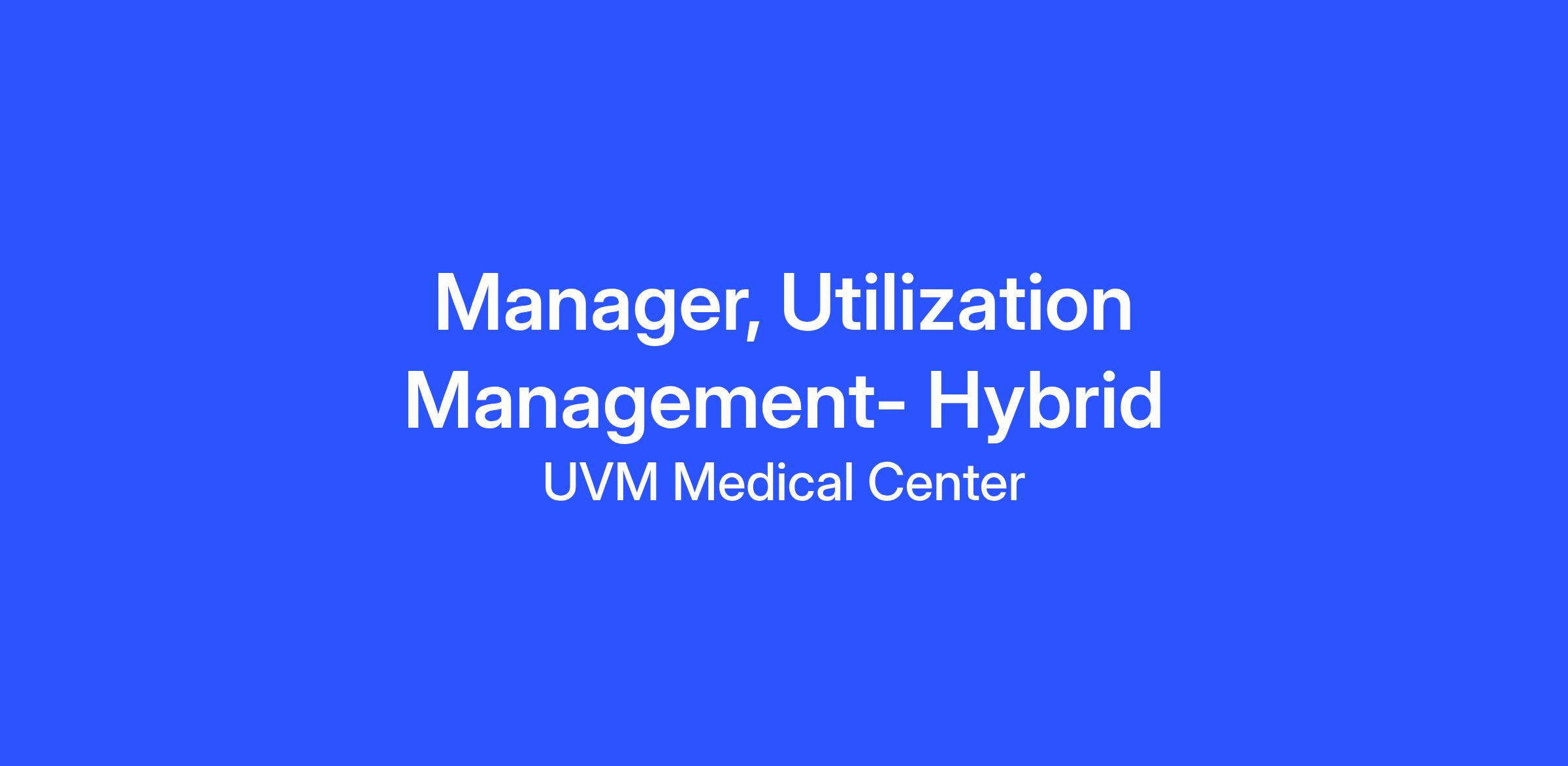 The Manager of Utilization Management leads teams responsible for oversight of staff and daily operations within the Utilization Management (UM) department. This role provides training, guidance, and support to direct reports, ensures regulatory compliance, and contributes to UM programming across the UVM Health. The manager ensures quality outcomes in medical necessity review, appeals, denials, and patient status determination.