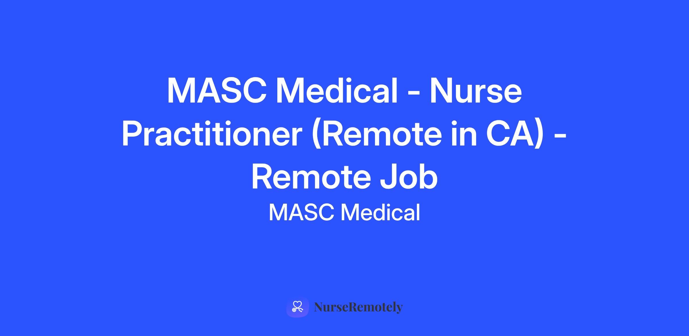 MASC Medical - Nurse Practitioner (Remote in CA) - Remote Job