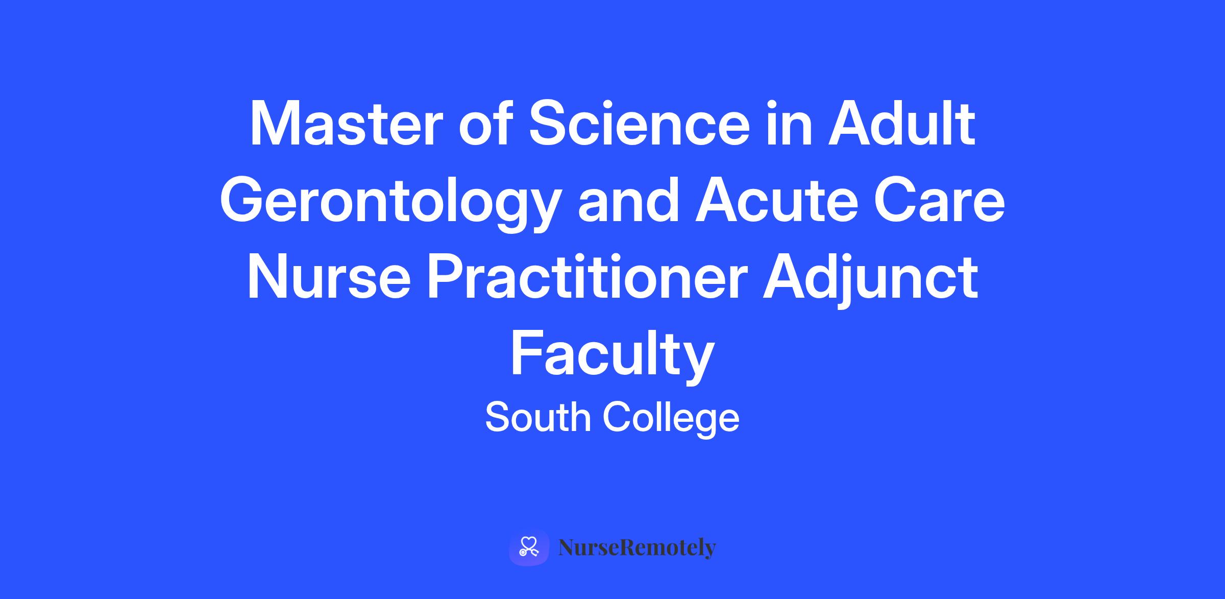South College Online seeks candidates for an adjunct Adult Gerontology and Acute Care Nurse Practitioner (AGACNP) faculty member. The position is online remote and will report directly to the Program Coordinator of the AGACNP program.