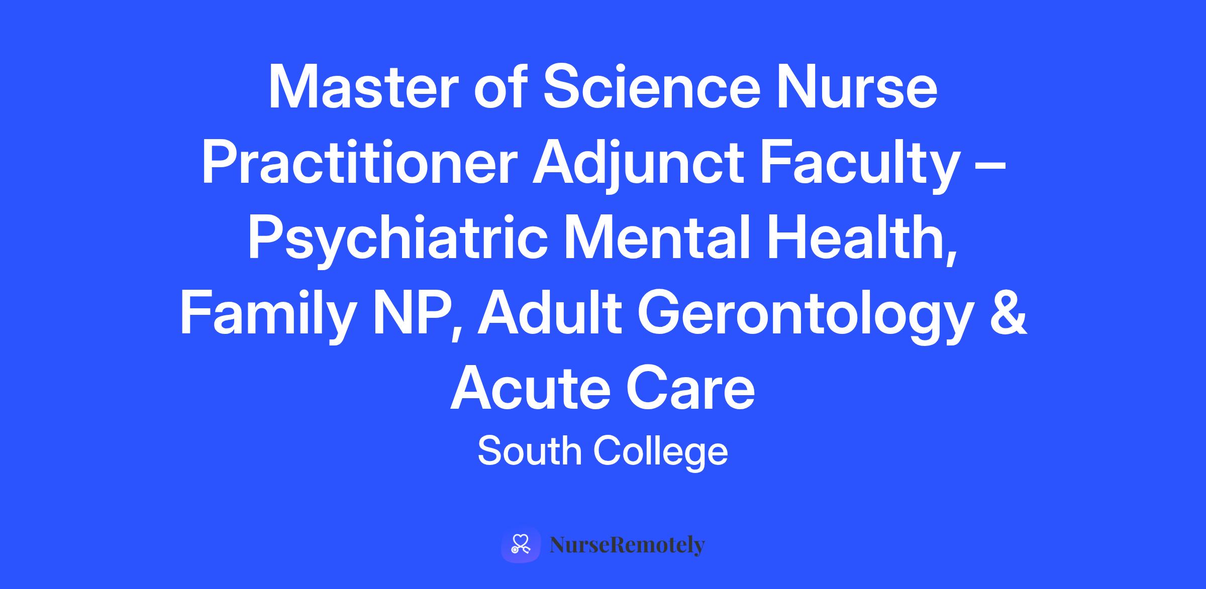 Shape the future of advanced practice nursing with South College School of Nursing! We are seeking dynamic, doctorally prepared adjunct faculty to teach fully online didactic and practicum courses in our nationally recognized graduate nursing programs. This is a unique opportunity to share your expertise, mentor future nurse leaders, and make a meaningful impact while working 100% remotely.