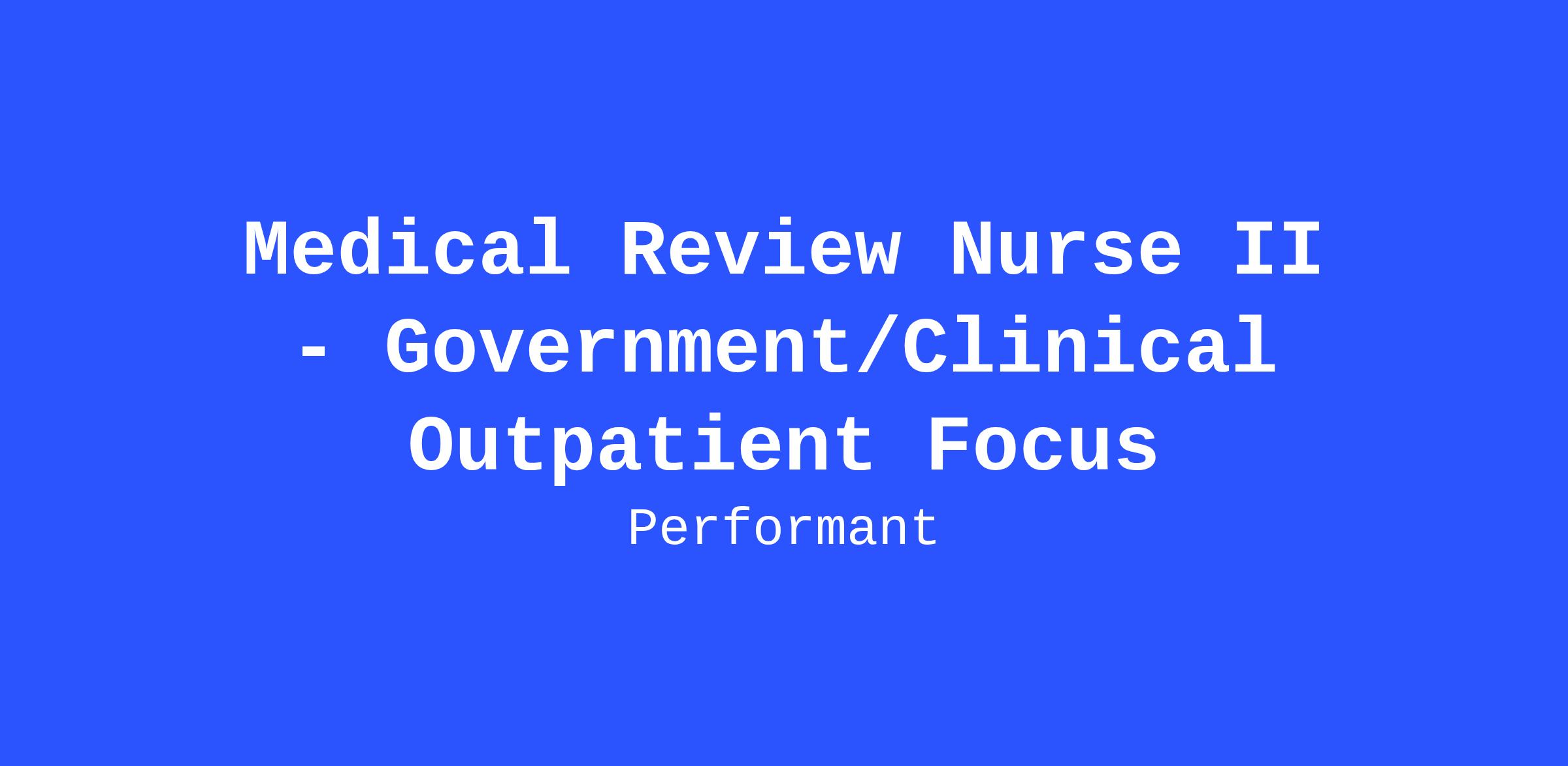 Hiring Range:$75,000 - $80,000The Medical Review Nurse II - Government/Clinical Outpatient Focus primarily performs medical claims audit reviews. As a MR Nurse, you will join a team of experienced medical auditors and coders performing retrospective and prepayment audits on claims for Government and Commercial Payers. You will work remotely in a fast paced and dynamic environment and be part of a multi-location team.