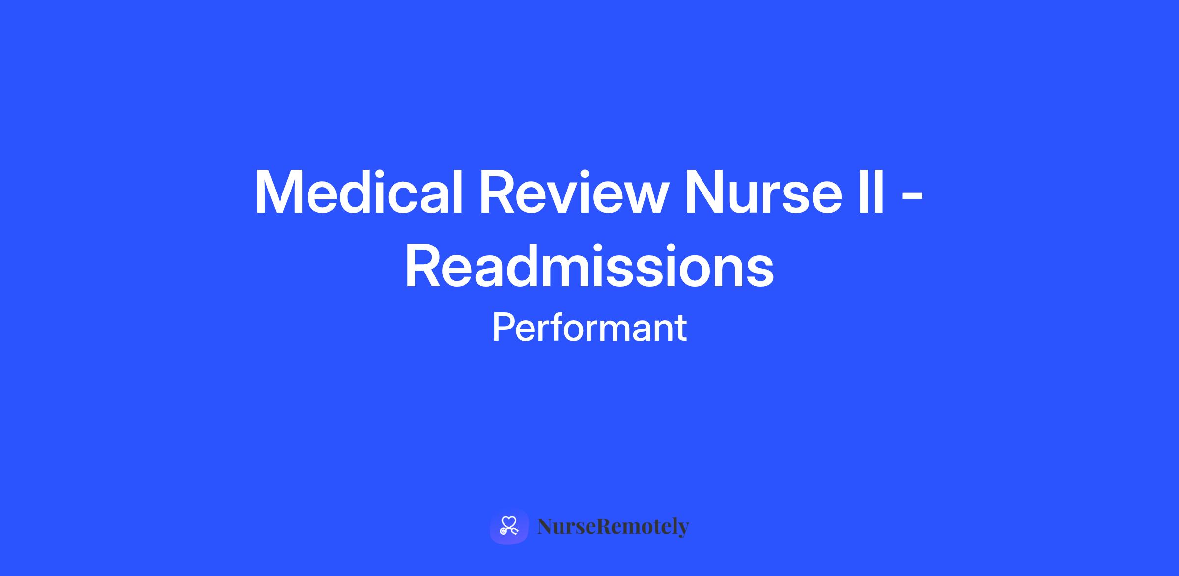 Hiring Range: $68,000 to $78,000The Medical Review Nurse II - Readmissions primarily performs medical claims audit reviews. As a MR Nurse, you will join a team of experienced medical auditors and coders performing retrospective and prepayment audits on claims for Government and Commercial Payers. You will work remotely in a fast paced and dynamic environment and be part of a multi-location team.