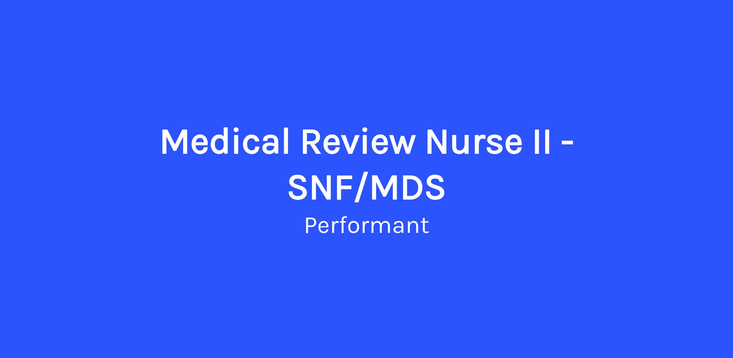 Expected Hiring Range: $80,000 - $100,000 (based on experience)The Medical Review Nurse II - SNF/MDS primarily performs medical claims audit reviews. As a MR Nurse, you will join a team of experienced medical auditors and coders performing retrospective and prepayment audits on claims for Government and Commercial Payers. You will work remotely in a fast paced and dynamic environment and be part of a multi-location team.