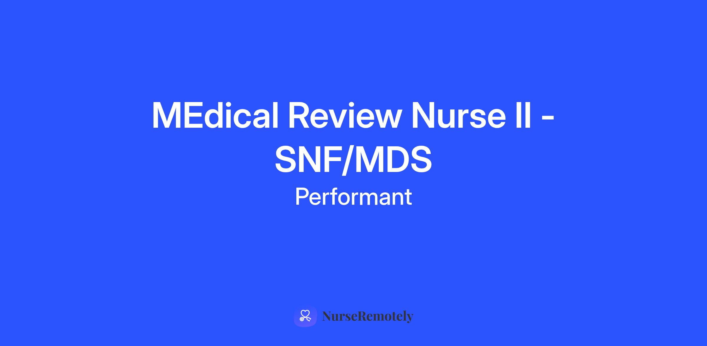Hiring Range: $75,000 - $84,000The Medical Review Nurse II - SNF/MDS primarily performs medical claims audit reviews. As a MR Nurse, you will join a team of experienced medical auditors and coders performing retrospective and prepayment audits on claims for Government and Commercial Payers. You will work remotely in a fast paced and dynamic environment and be part of a multi-location team.