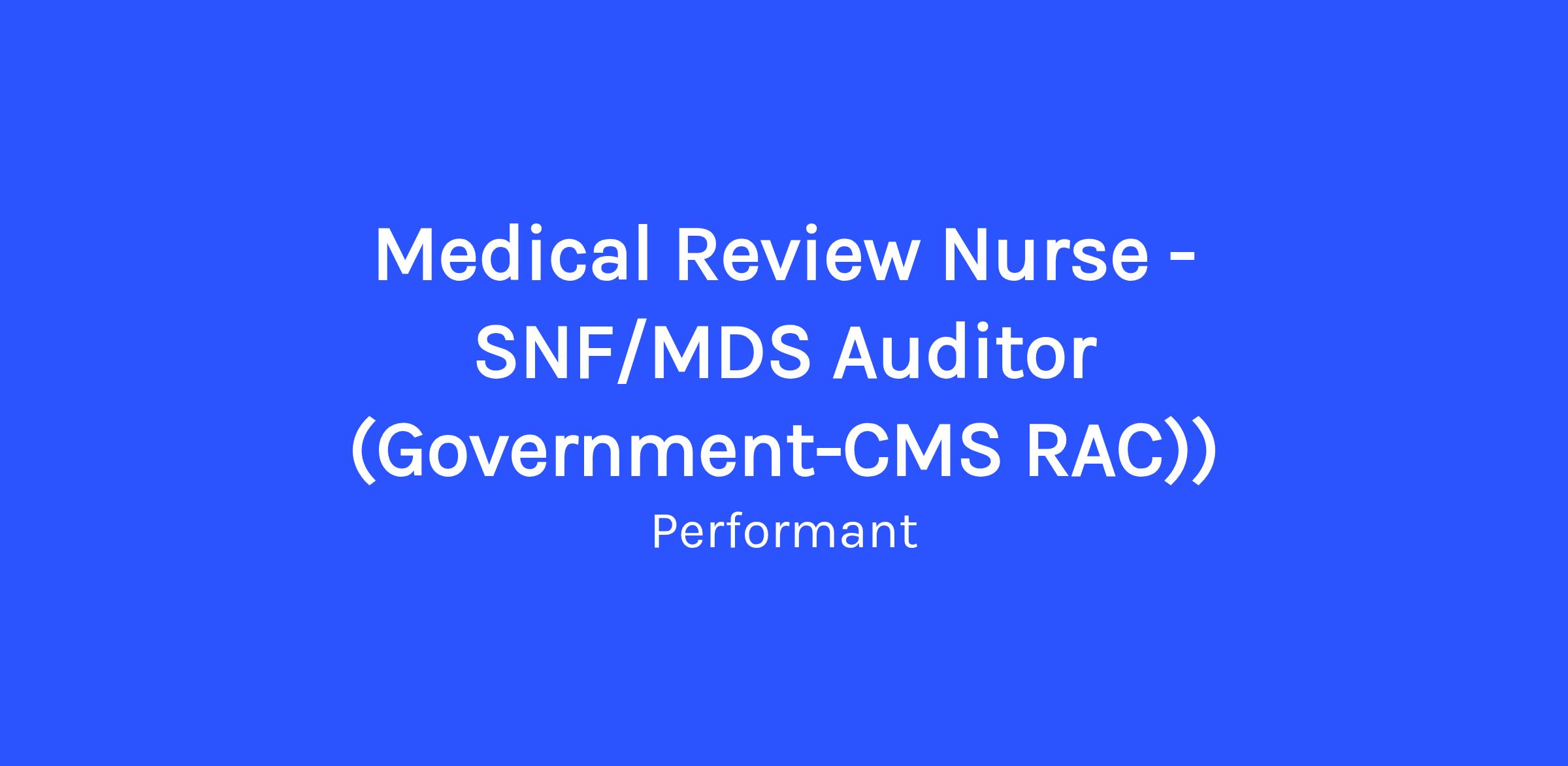 Expected Hiring Range: $84,000 - $100,000 (based on experience)The Medical Review Nurse II - SNF/MDS primarily performs medical claims audit reviews. As a MR Nurse, you will join a team of experienced medical auditors and coders performing retrospective and prepayment audits on claims for Government and Commercial Payers. You will work remotely in a fast paced and dynamic environment and be part of a multi-location team.