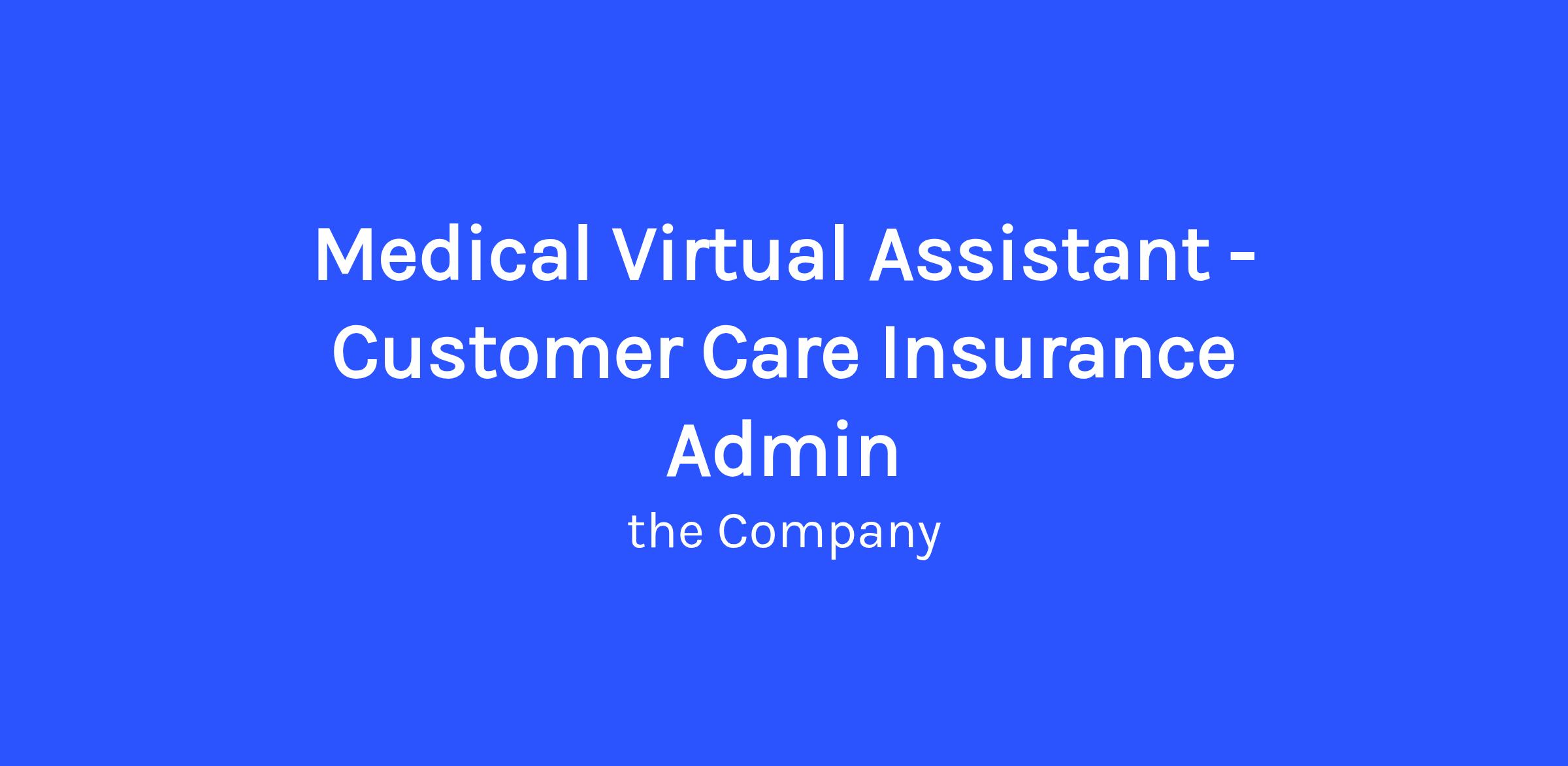 DescriptionJob Title: Medical Virtual Assistant – Customer Care Insurance Admin