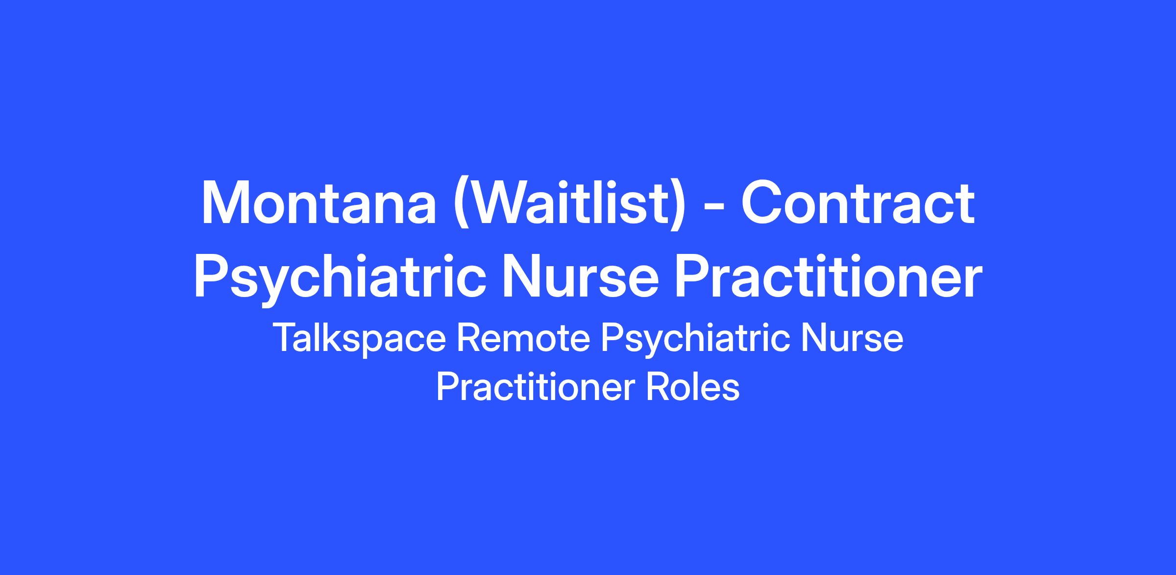 Montana (Waitlist) - Contract Psychiatric Nurse Practitioner