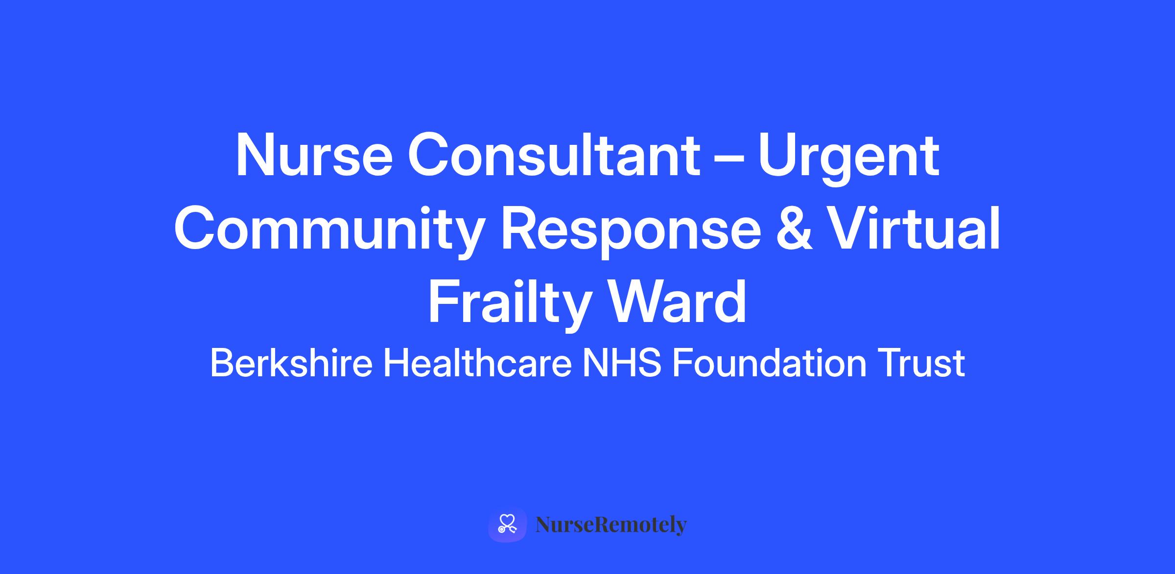 We are seeking a highly skilled & motivated 8b Nurse Consultant to join our Berkshire UCR VFW teams & work alongside our existing Nurse Consultant. This is an exciting opportunity to apply your clinical expertise, strategic leadership & passion for improving care within a forward-thinking service.