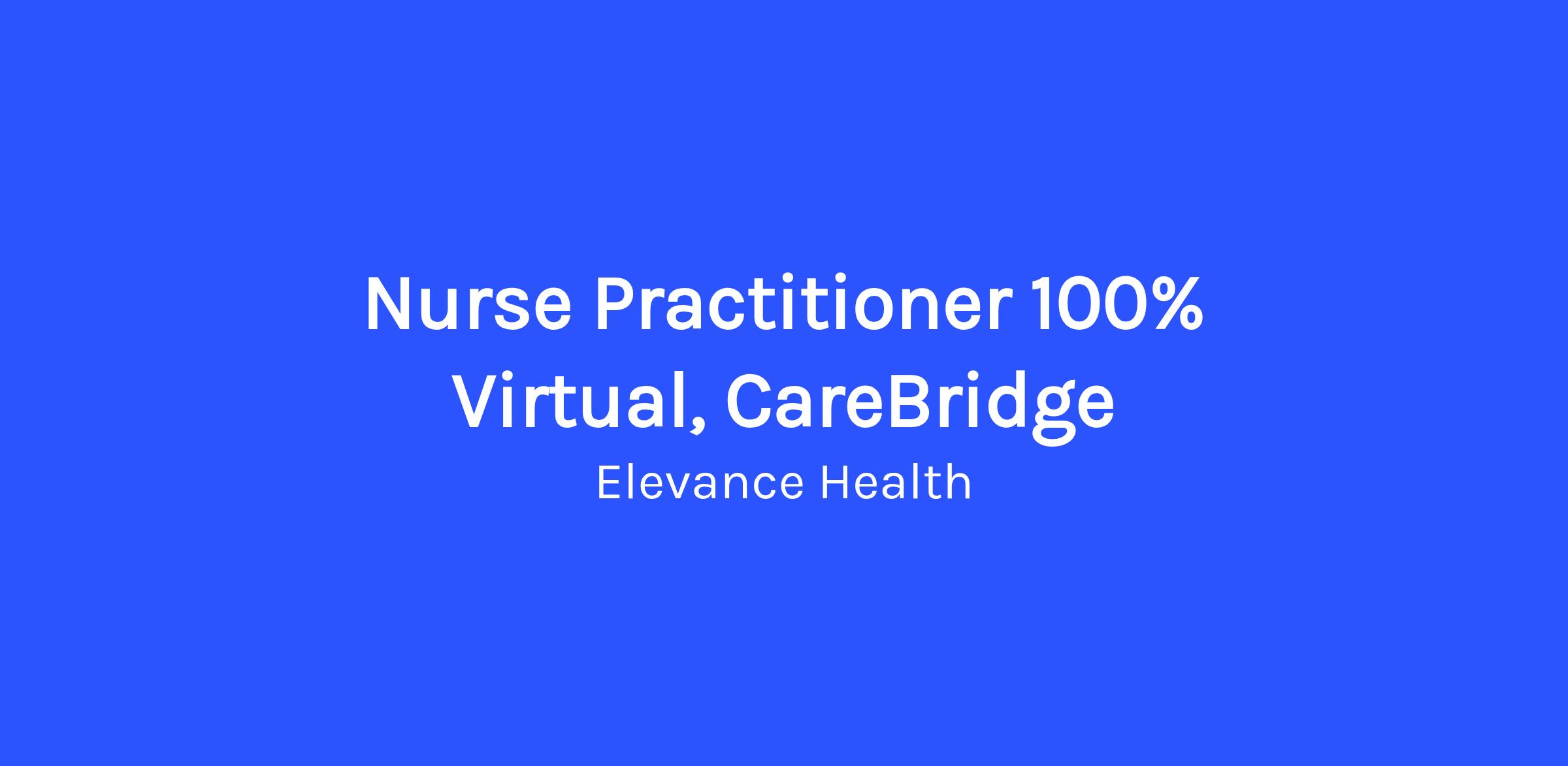 Nurse Practitioner 100% Virtual, CareBridgeJob Description: