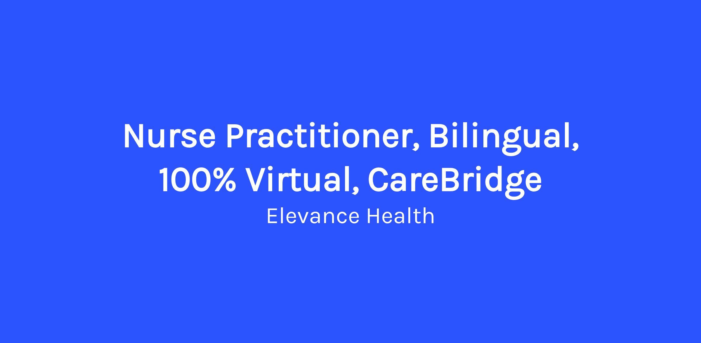 Nurse Practitioner, Bilingual, 100% Virtual, CareBridgeJob Description: